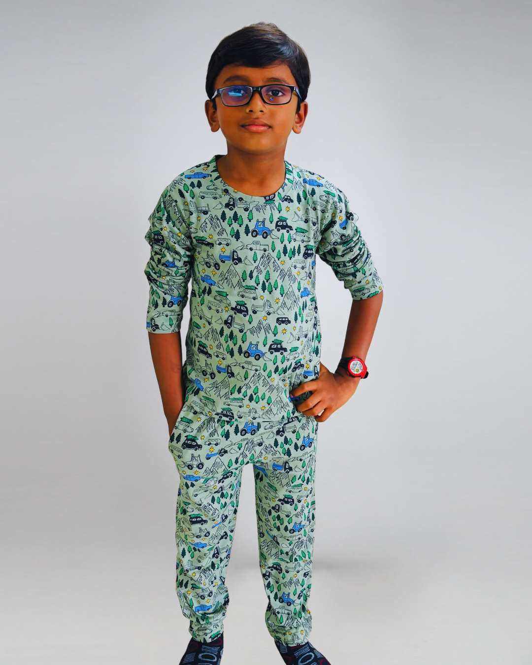 Green Unicorn Print Kids Coords (Unisex) - Half Sleeve T-Shirt and Full Pant