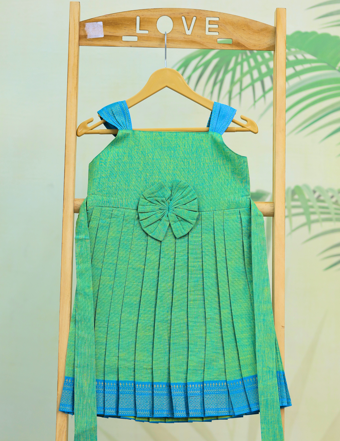Jade Green HandLoom Cotton Frock l Sleeveless Frock with Soft Lining