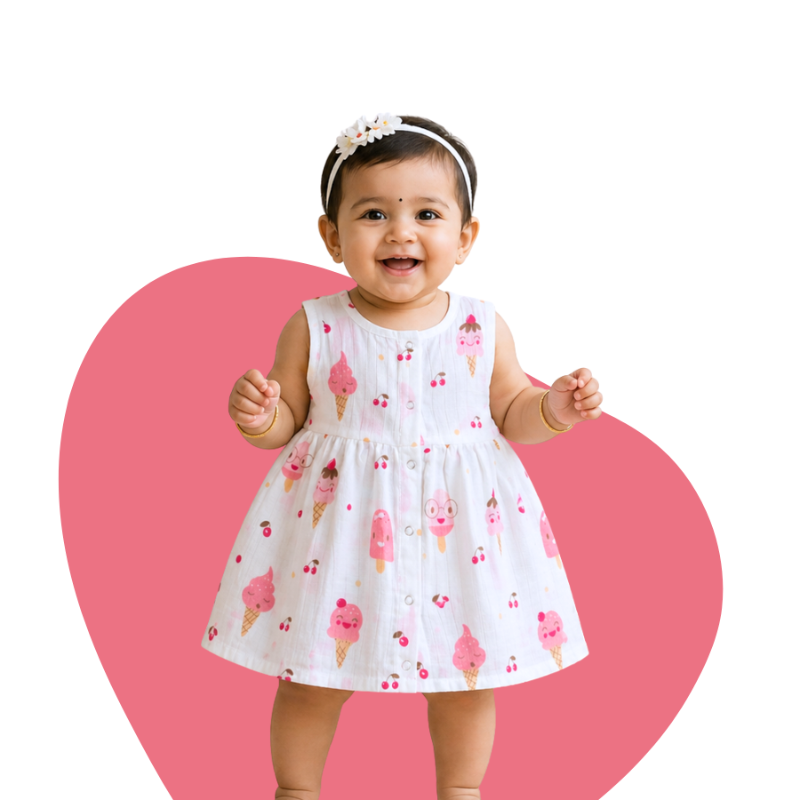 To spark joy in every child’s wardrobe with fashion that’s as lively, lovable, and lasting as they are. We’re committed to crafting premium-quality apparel using the finest fabrics and charming designs - because your little one deserves nothing but the best.
