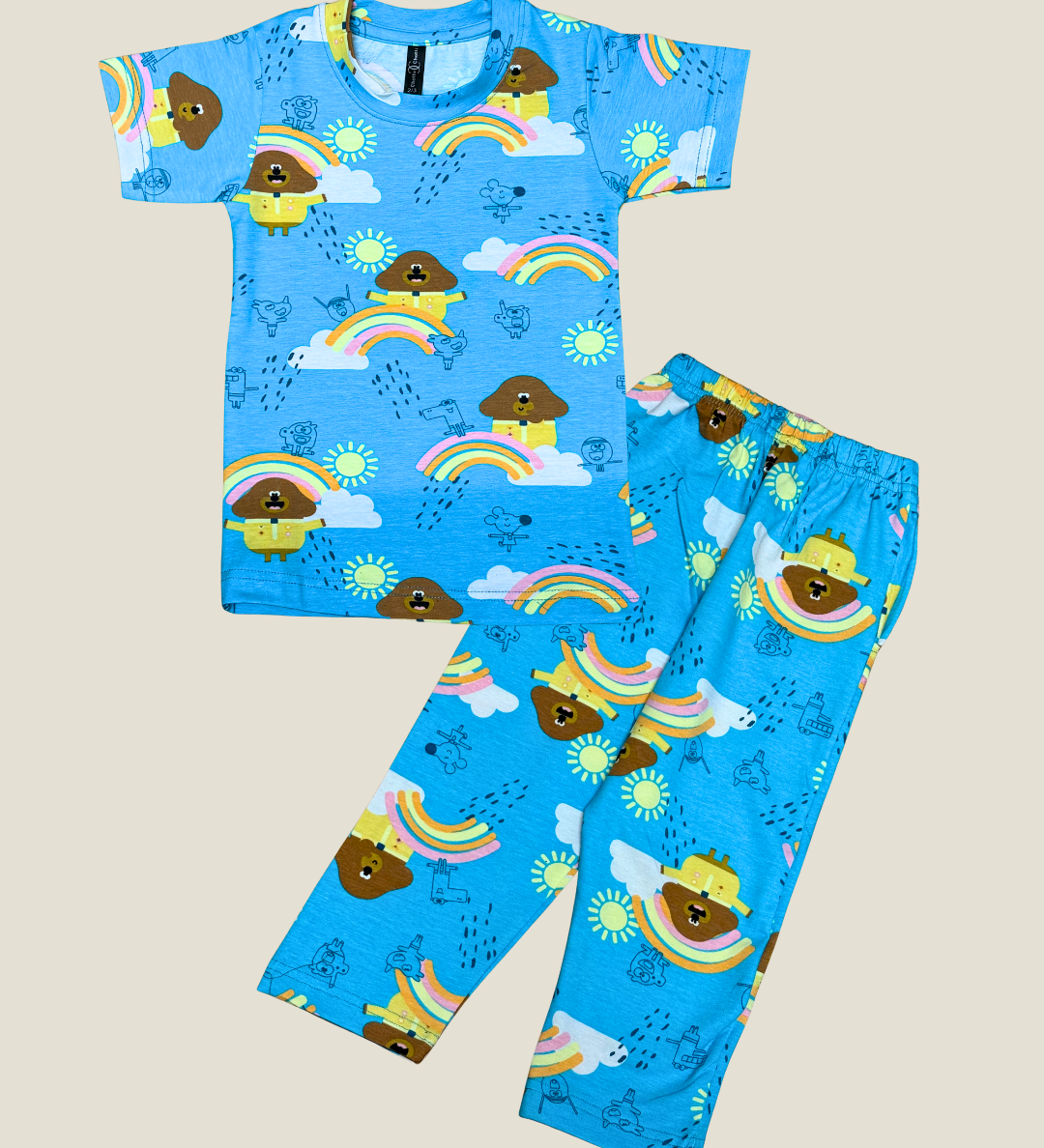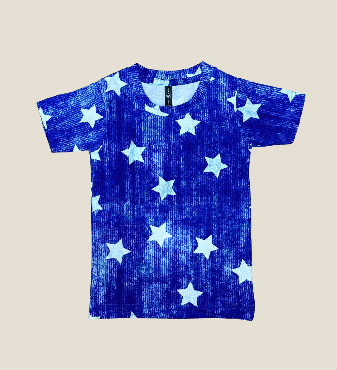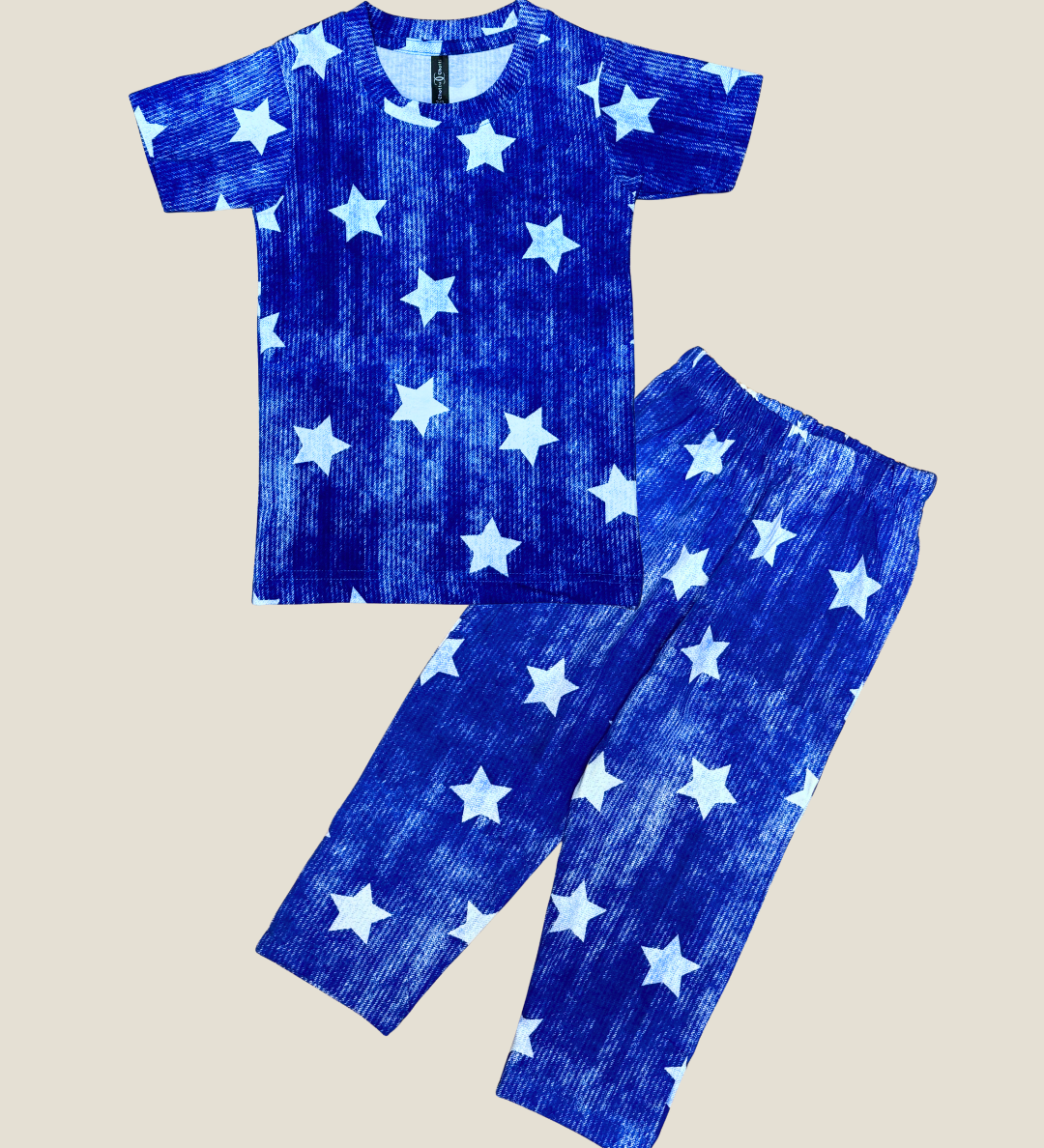 Blue Star Print Kids Coords (Unisex) - Half Sleeve T-Shirt and Full Pant