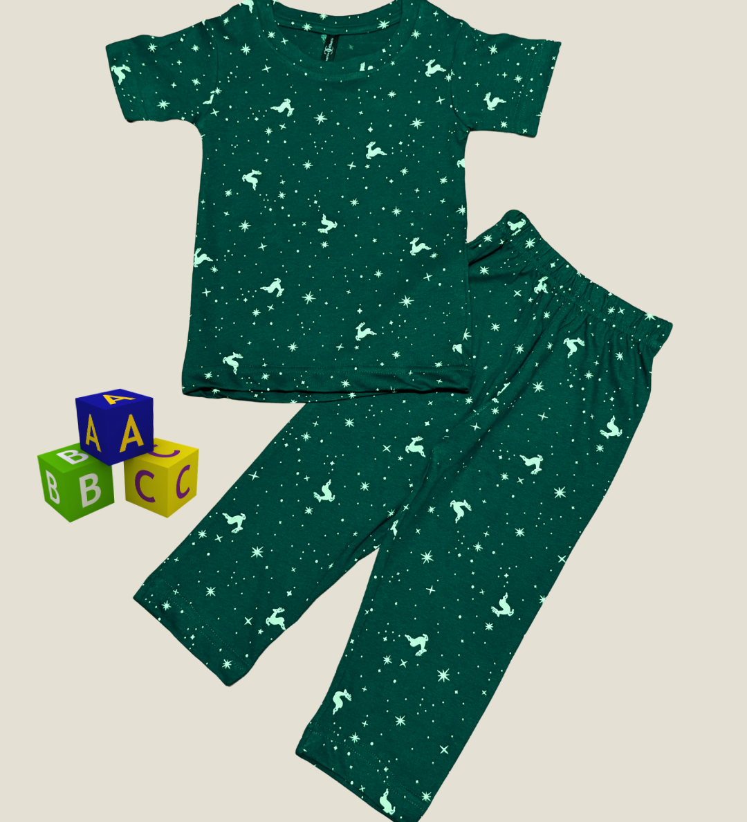 Green Unicorn Print Kids Coords (Unisex) - Half Sleeve T-Shirt and Full Pant