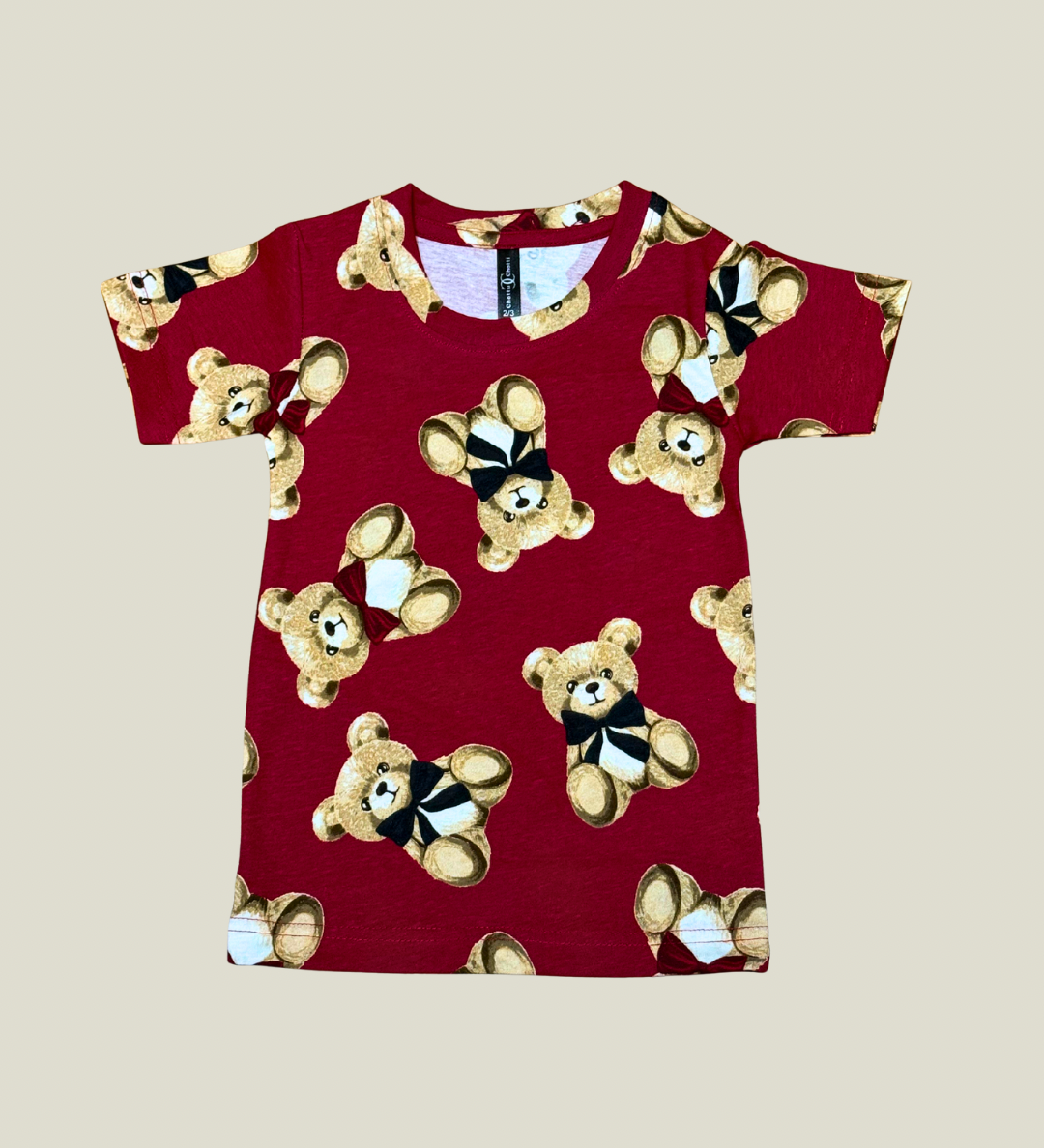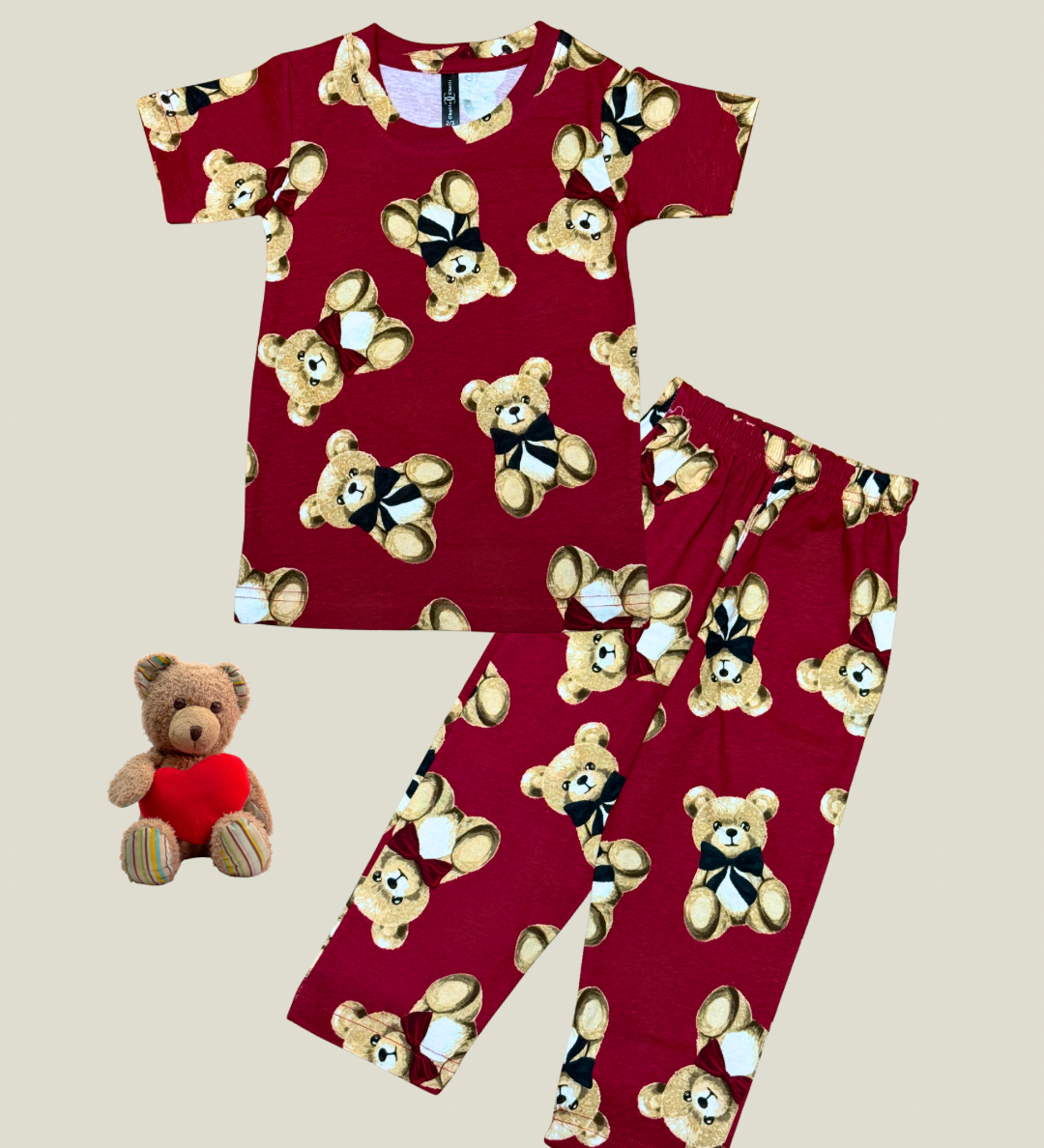 Red Teddy Print Kids Coords (Unisex) - Half Sleeve T-Shirt and Full Pant