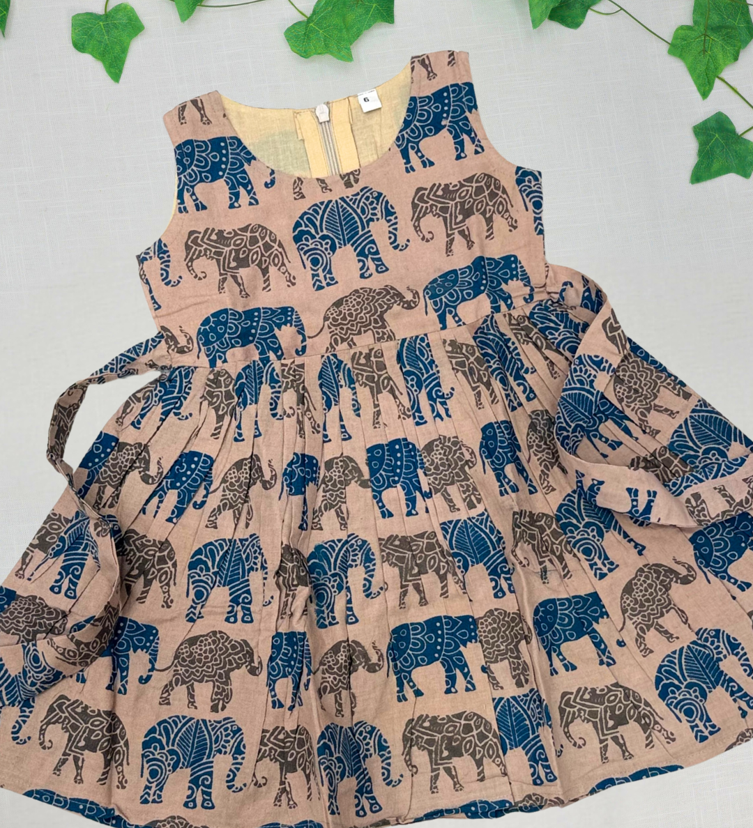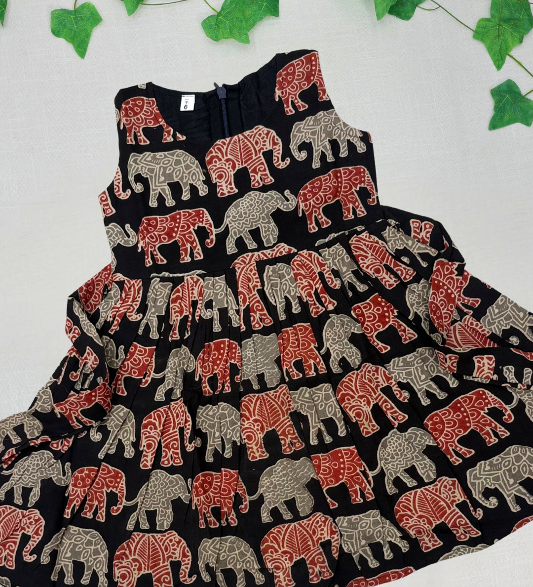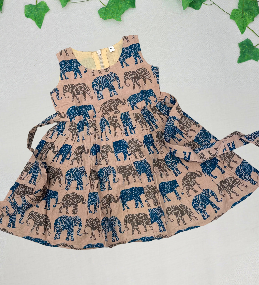 Kalamkari BG Elephant Print Cotton Frock | Sleeves Frock Calf Length