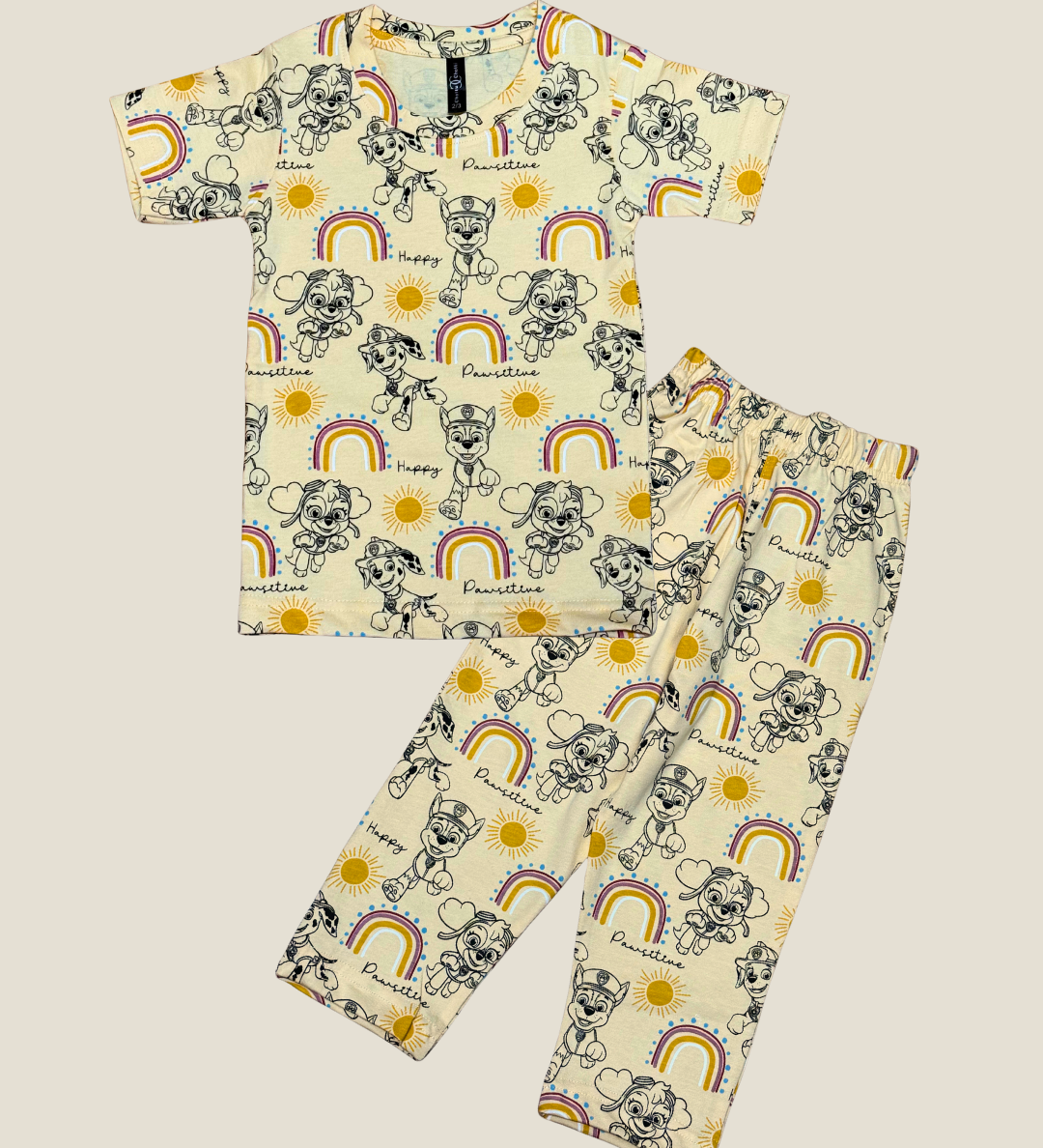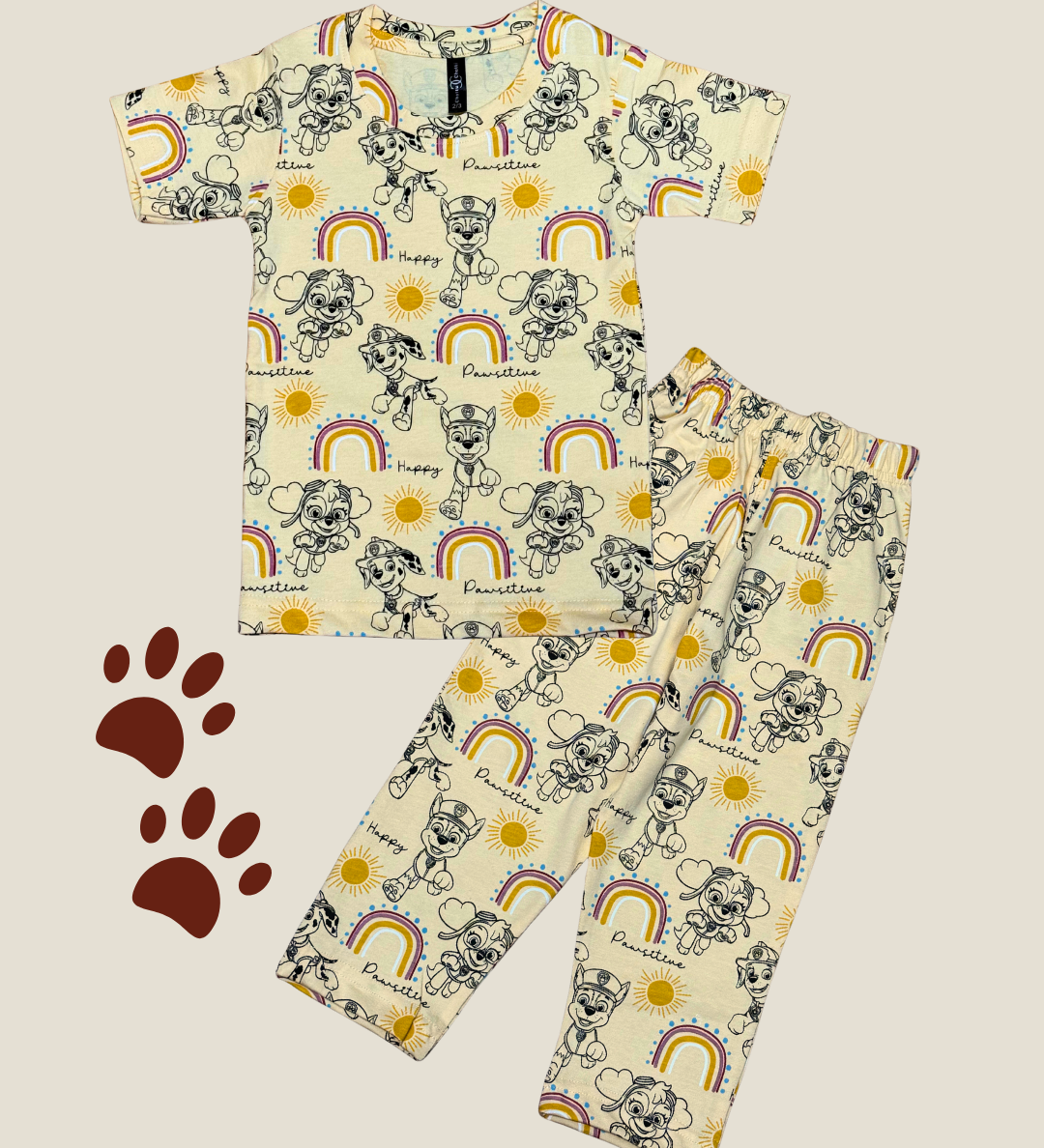 Paw Rainbow Print Kids Coords (Unisex) - Half Sleeve T-Shirt and Full Pant