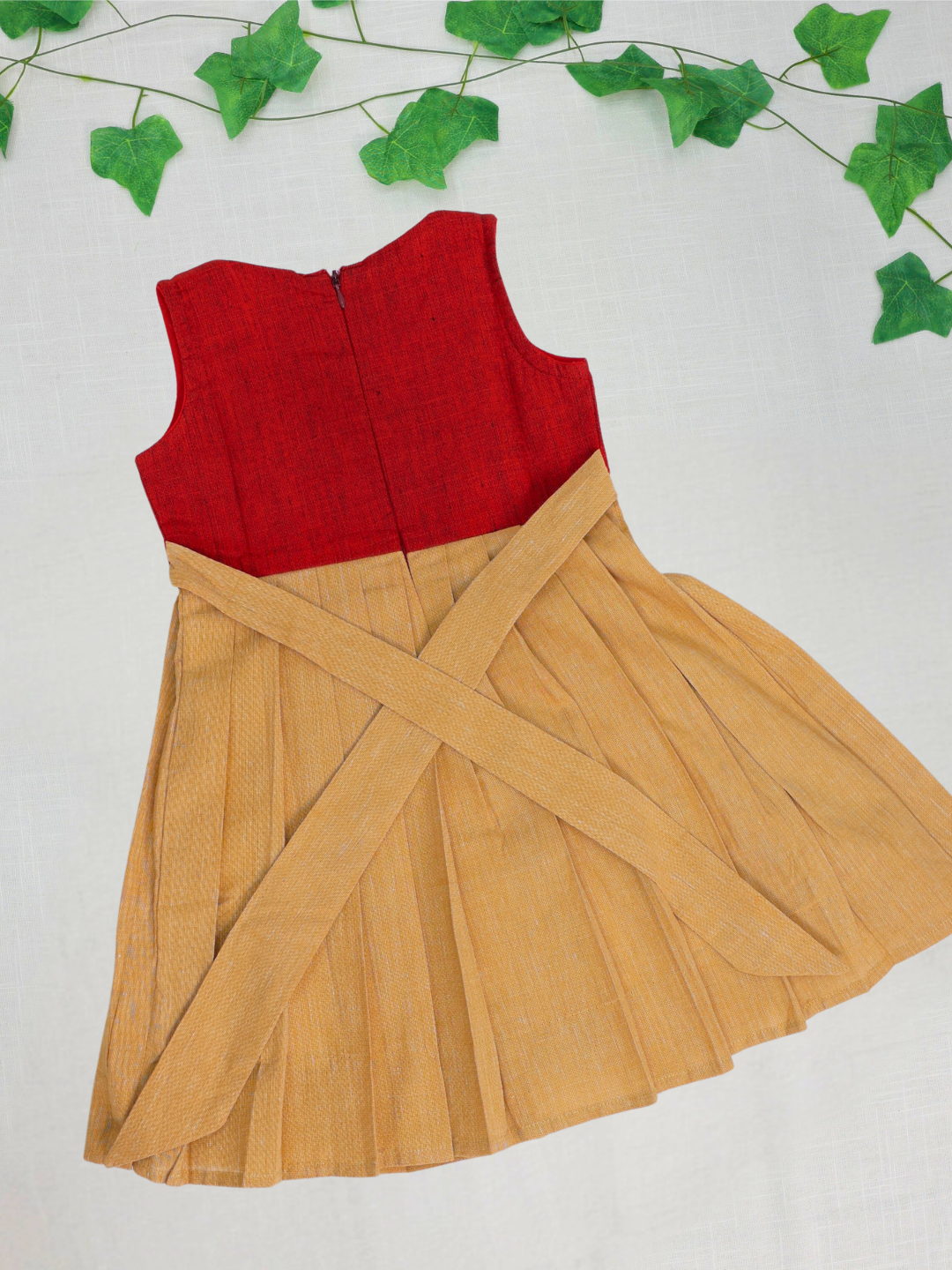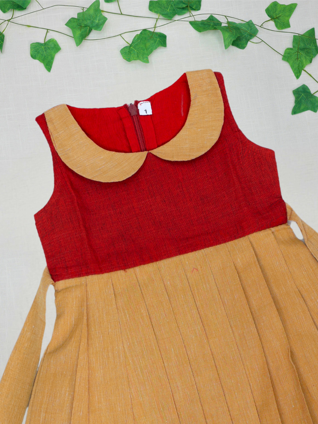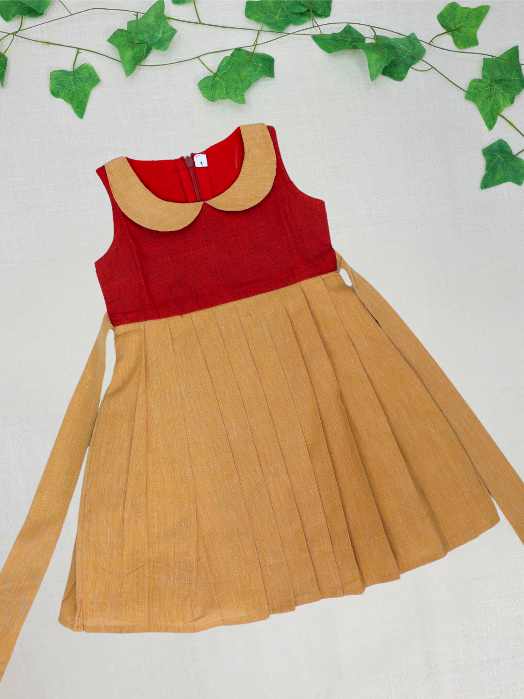 Diya HandLoom Cotton Frock | Sleeveless Frock with Pan Collar