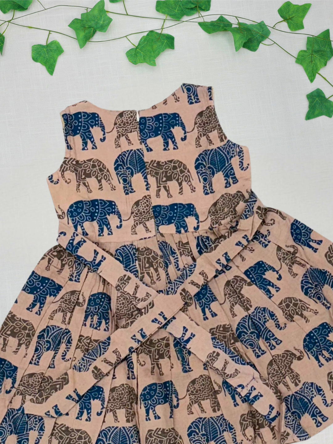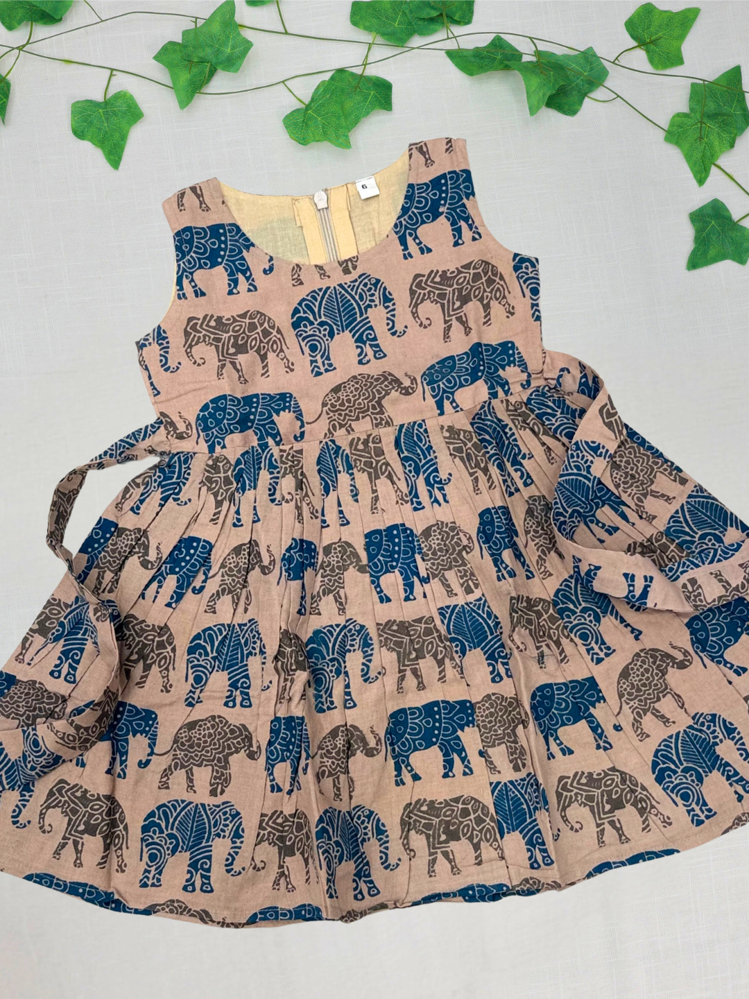 Kalamkari BG Elephant Print Cotton Frock | Sleeves Frock Calf Length