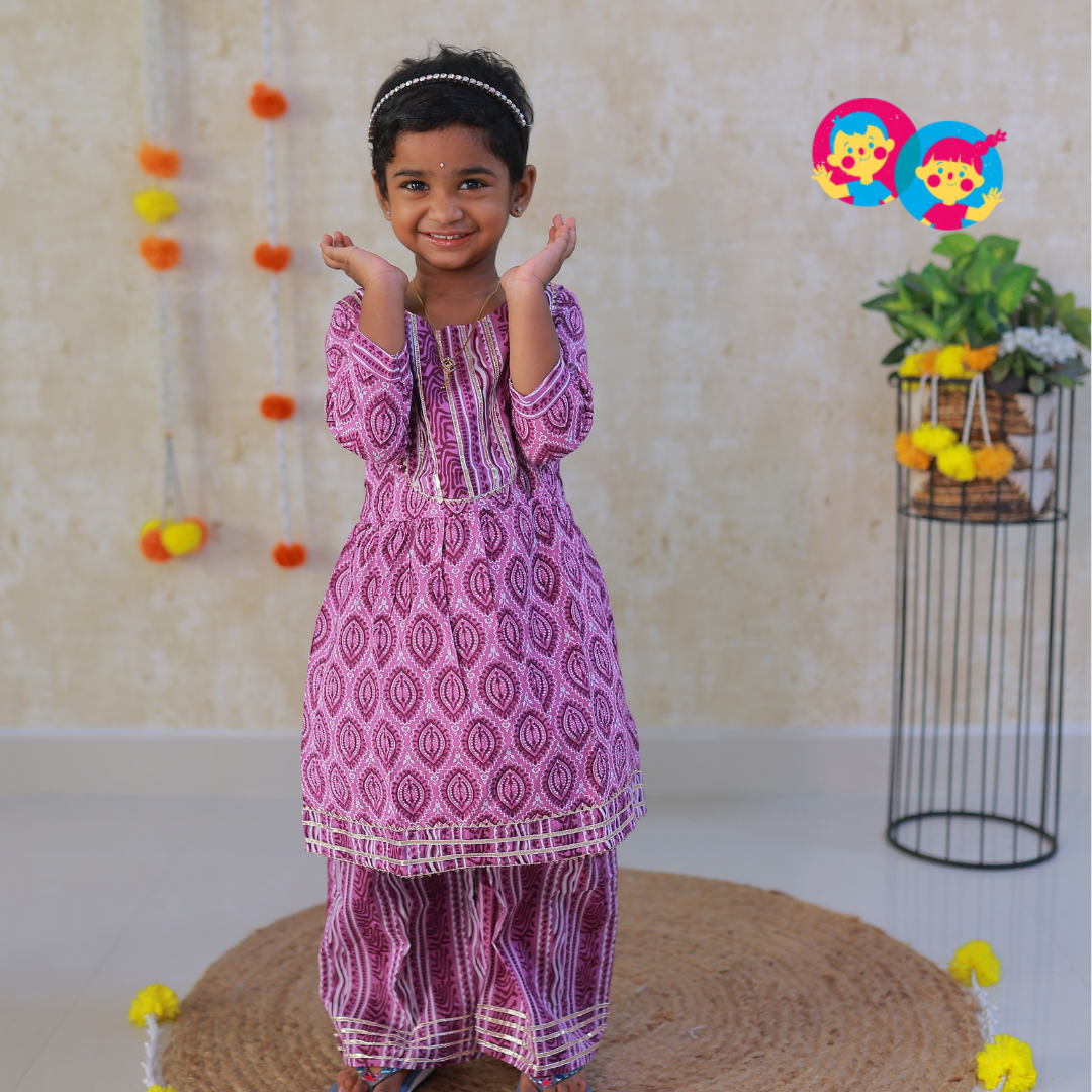 Purple Petal Girls Ethnic Kurta Sharara Set
