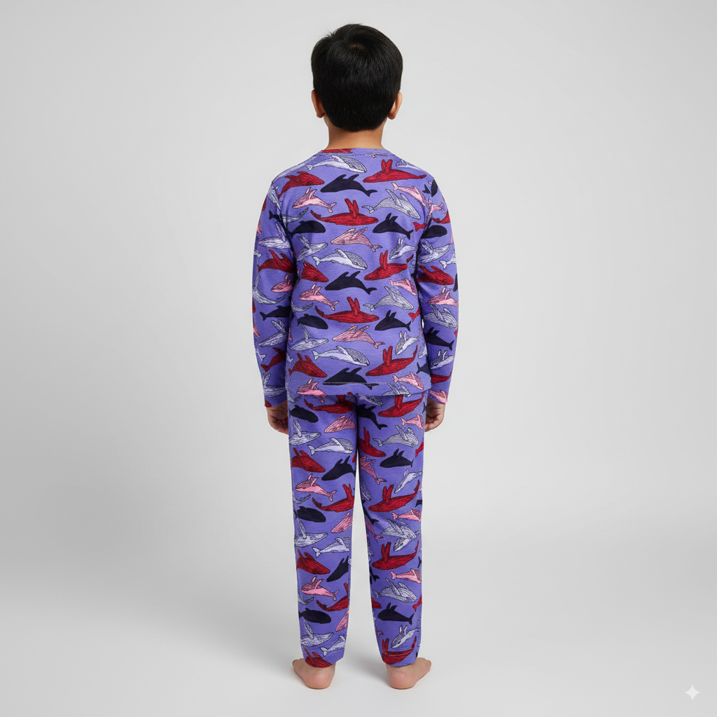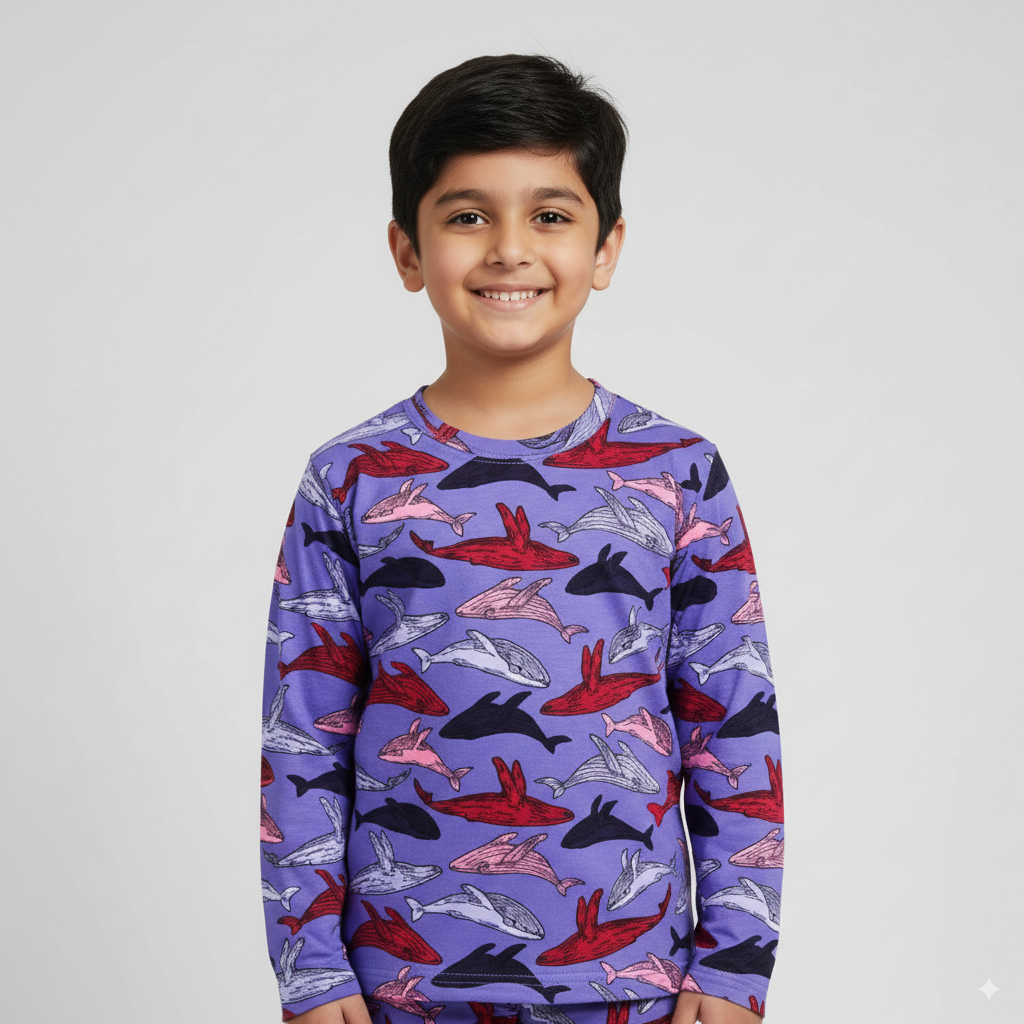 Sea Whale Full Sleeve Kids Co-ord Set (Unisex) - Pant with Single Side Packet
