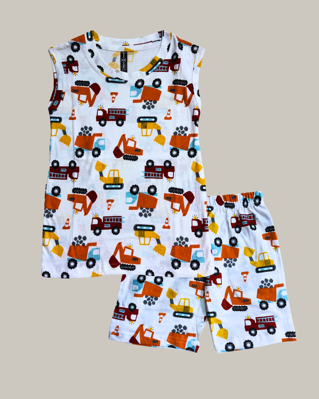 JCB Print Kids Sleeveless T-Shirt Shorts Set (Unisex)
