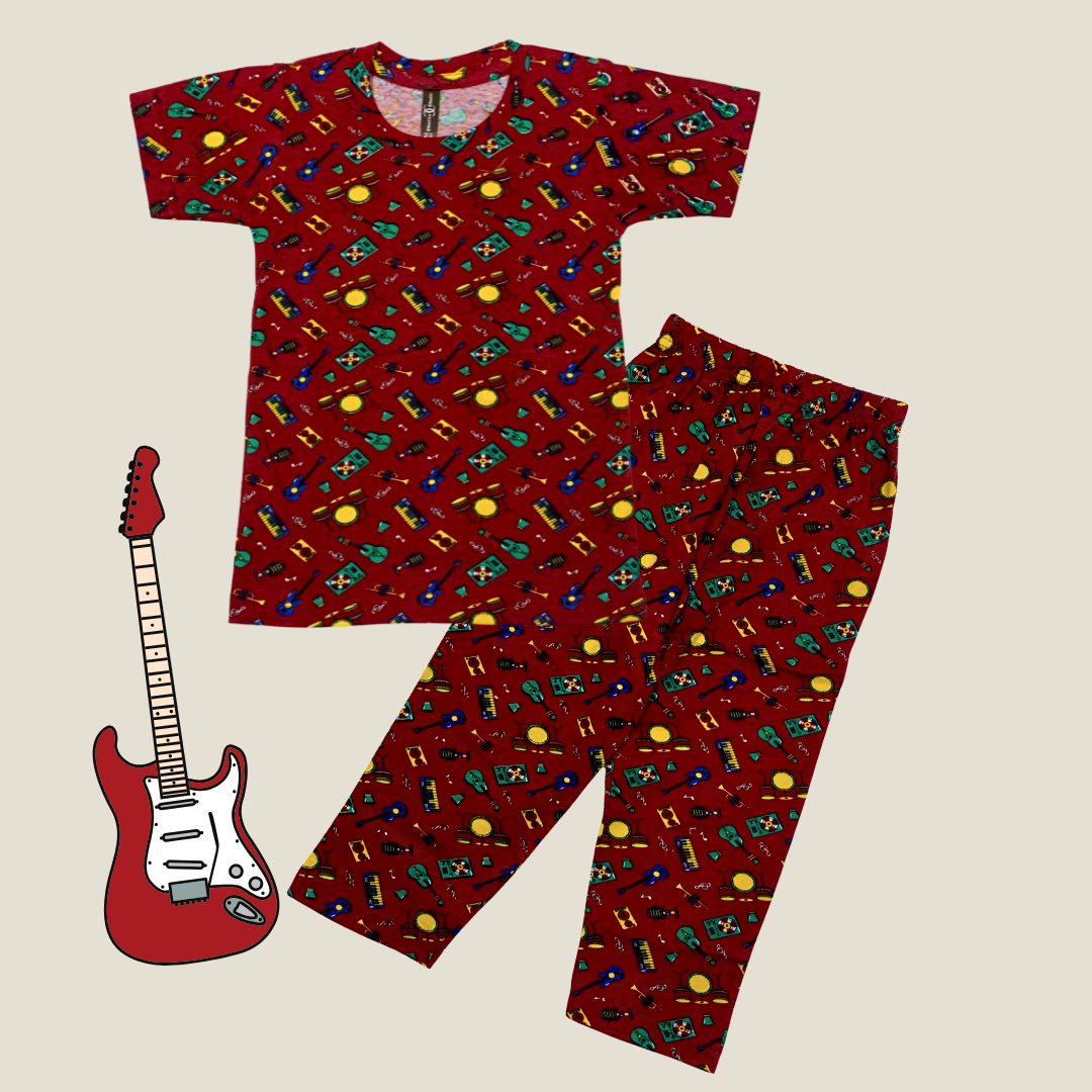 Music Love Print Half Sleeve Kids Coords (Unisex) - Half Sleeve T-Shirt and Full Pant