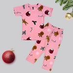 Christmas Candy Love Print Half Sleeve Kids Coords (Unisex) - Half Sleeve T-Shirt and Full Pant