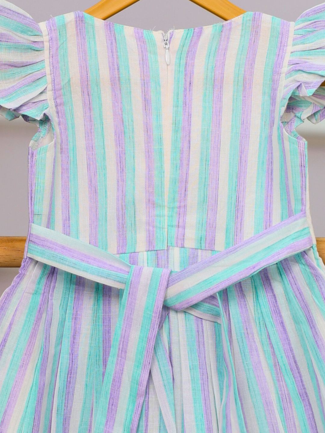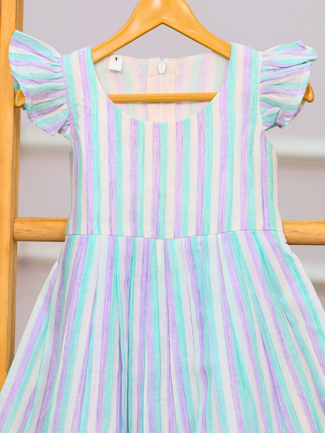 Classic Charm Stripes | Cap Sleeves Frock with Soft Lining