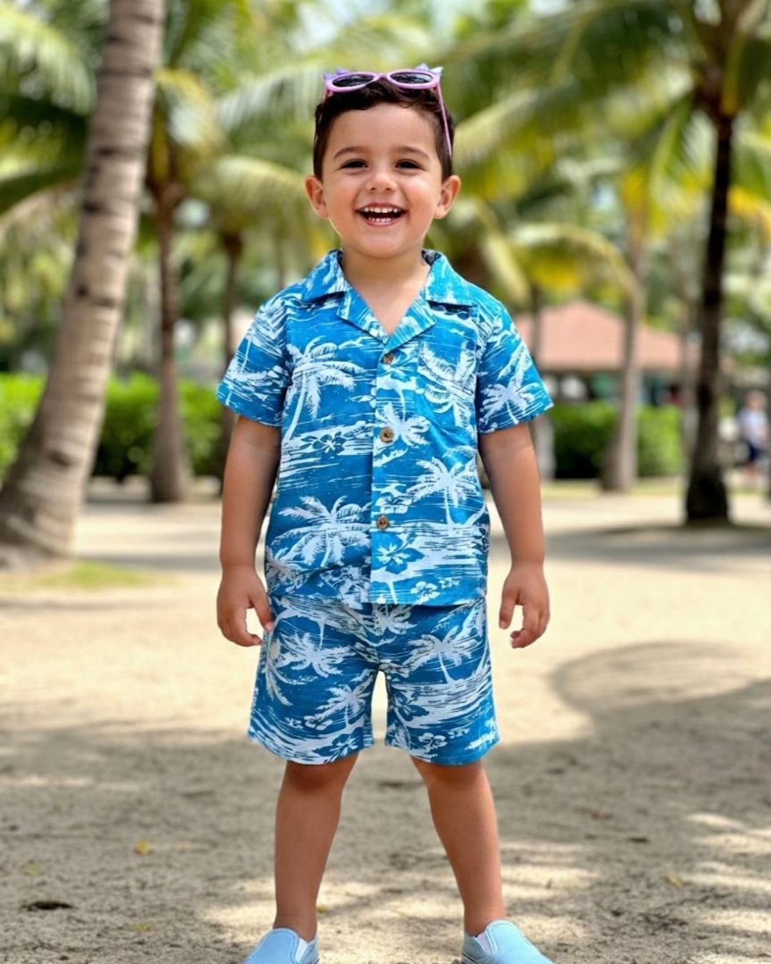 Let your little one dive into dreamland with our Tropical Sea Printed Shorts Set 🌊 Featuring playful sea creatures and ocean botanicals, crafted from lightweight premium rayon with a handy single side pocket – perfect for your little boy’s comfort and style.