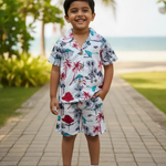 Let your little one dive into dreamland with our Tropical Sea Printed Shorts Set 🌊 Featuring playful sea creatures and ocean botanicals, crafted from lightweight premium rayon with a handy single side pocket – perfect for your little boy’s comfort and style.