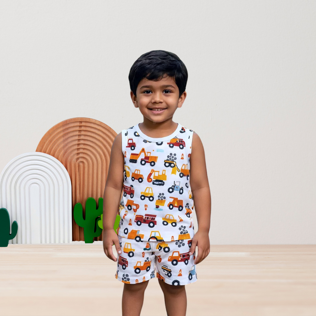 JCB Print Kids Sleeveless T-Shirt Shorts Set (Unisex)