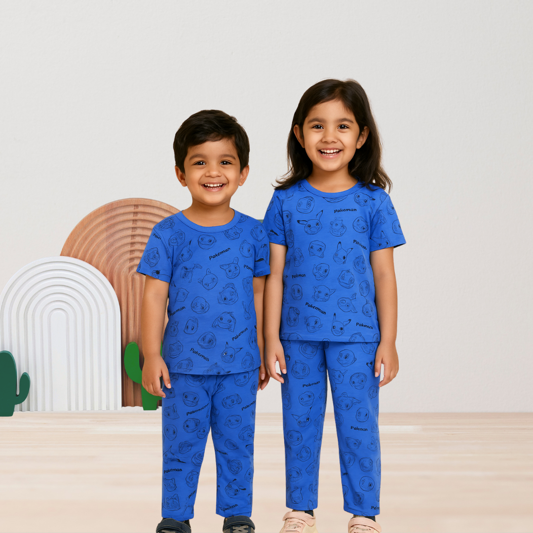 Pokemon Print Kids Coords (Unisex) - Half Sleeve T-Shirt and Full Pant