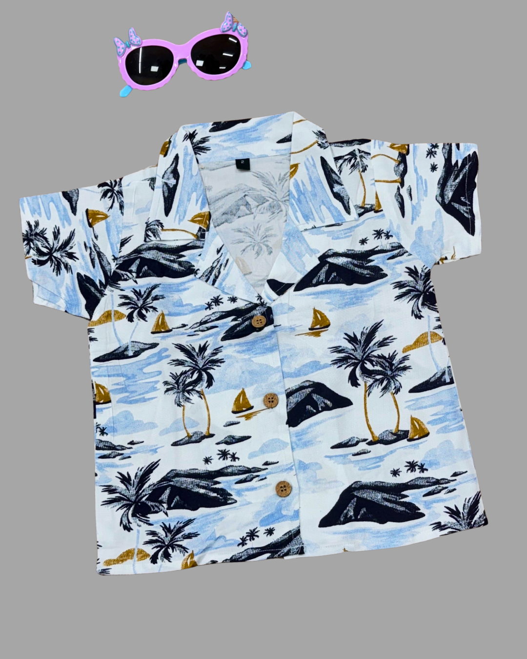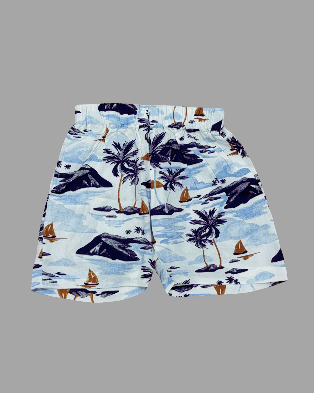 Tropical Blue Sea Boys Printed Half Sleeve Shirt with Shorts | Cuban Collar Shirt & Shorts Set