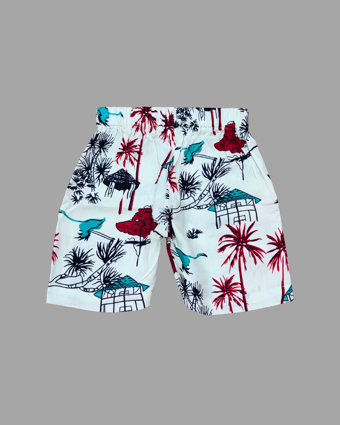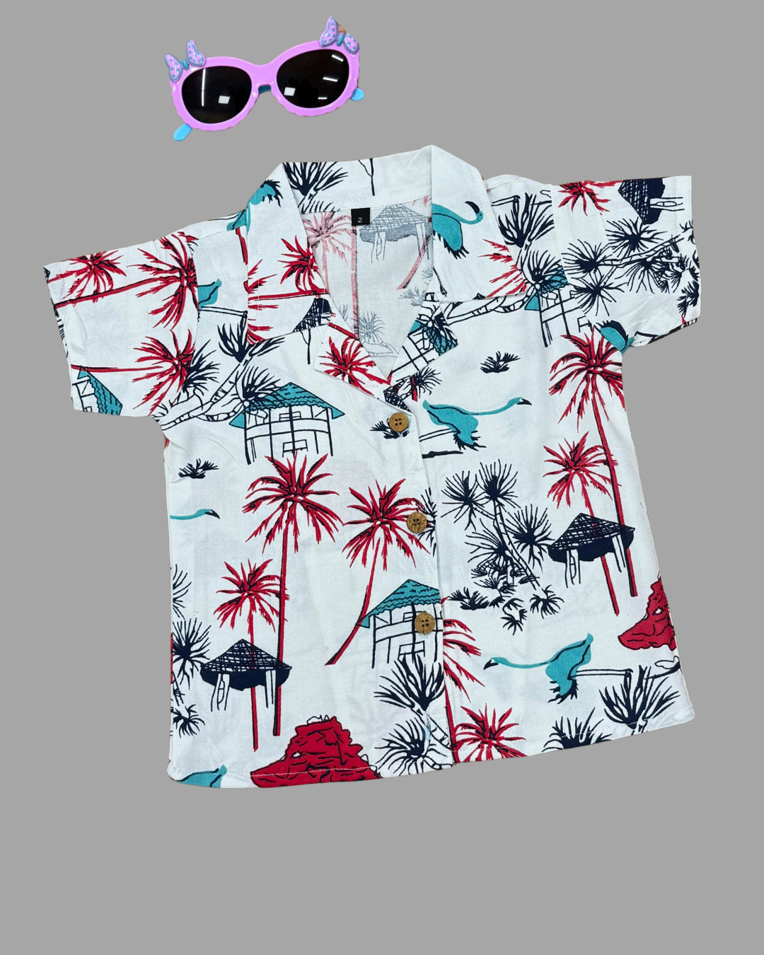 Tropical Hut Tree Boys Printed Half Sleeve Shirt with Shorts | Cuban Collar Shirt & Short Set