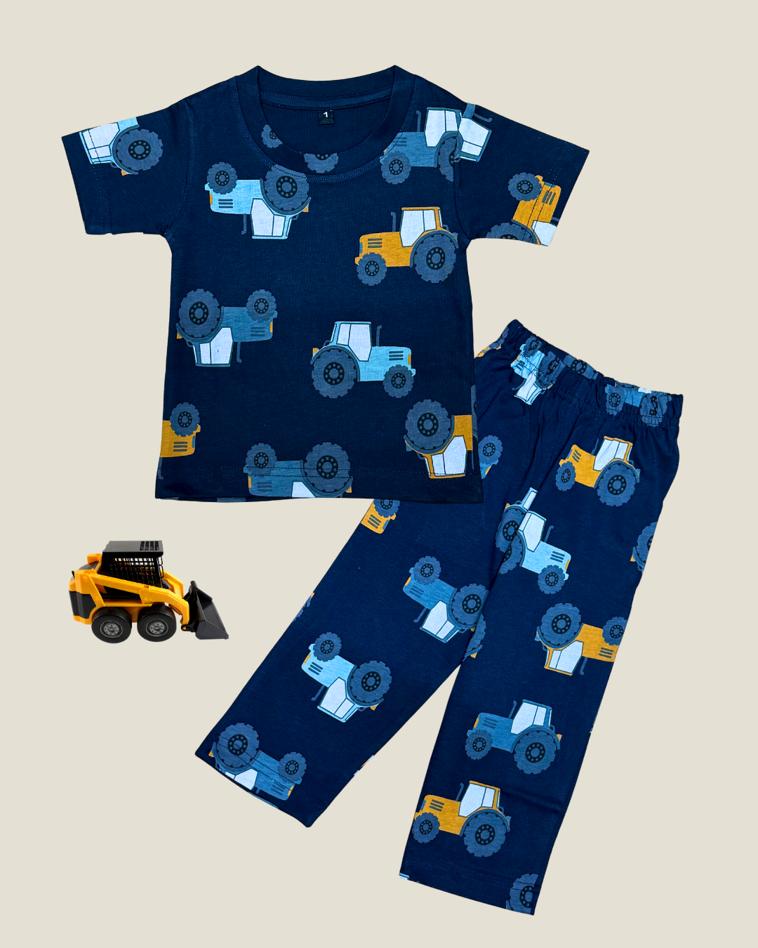 Blue Truck Print Kids Coords (Unisex) - Half Sleeve T-Shirt and Full Pant