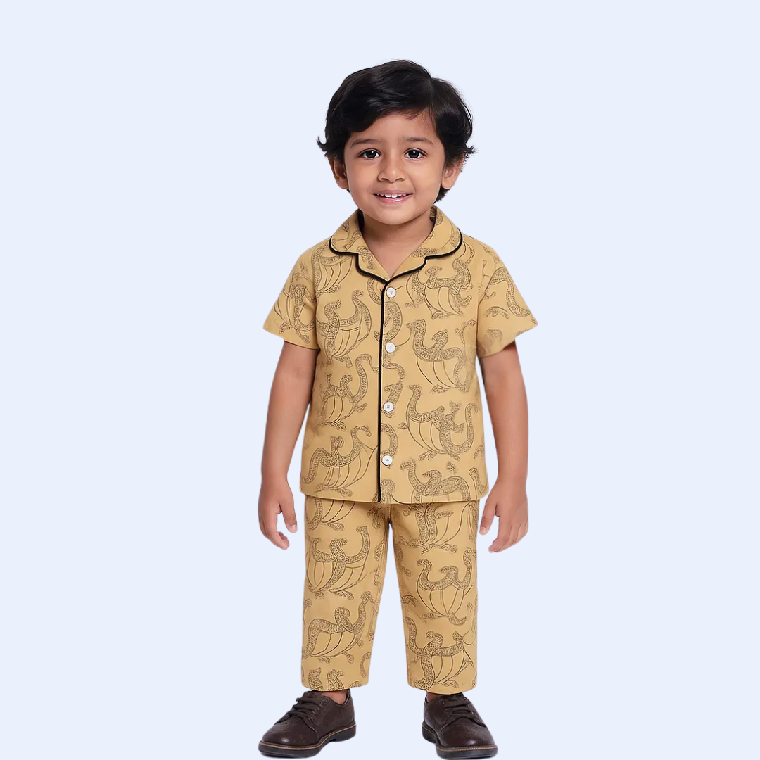 Choco Dragon Print Kids Night Suit - Half Sleeve Shirt and Full Pant