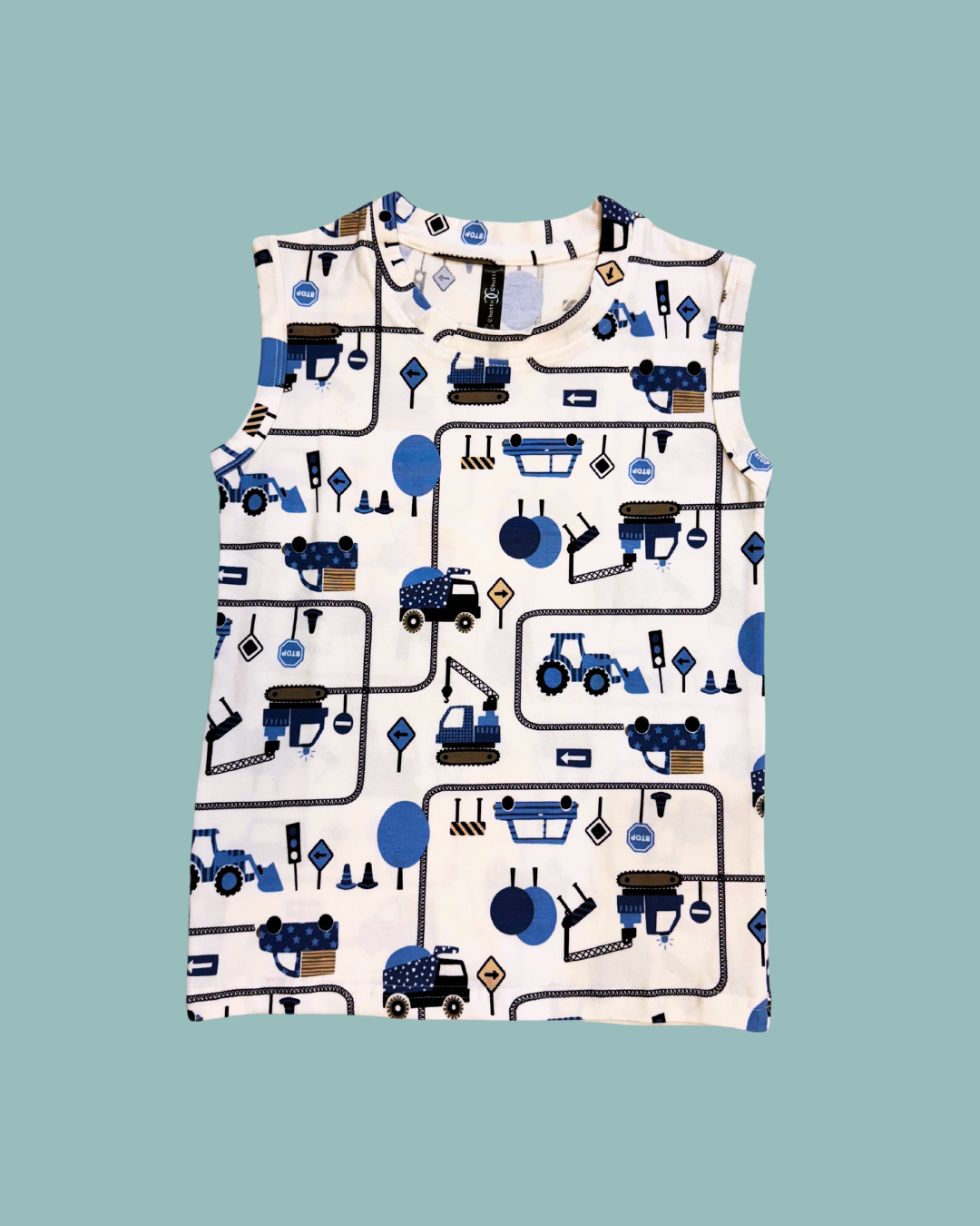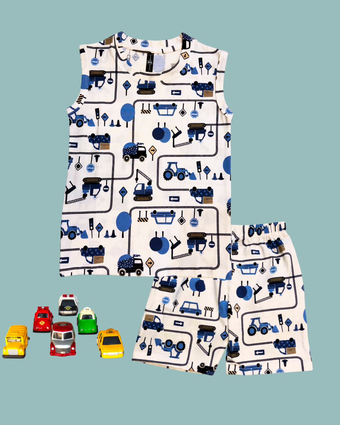 White Truck Lane Print Kids Sleeveless T-Shirt Shorts Set (Unisex)