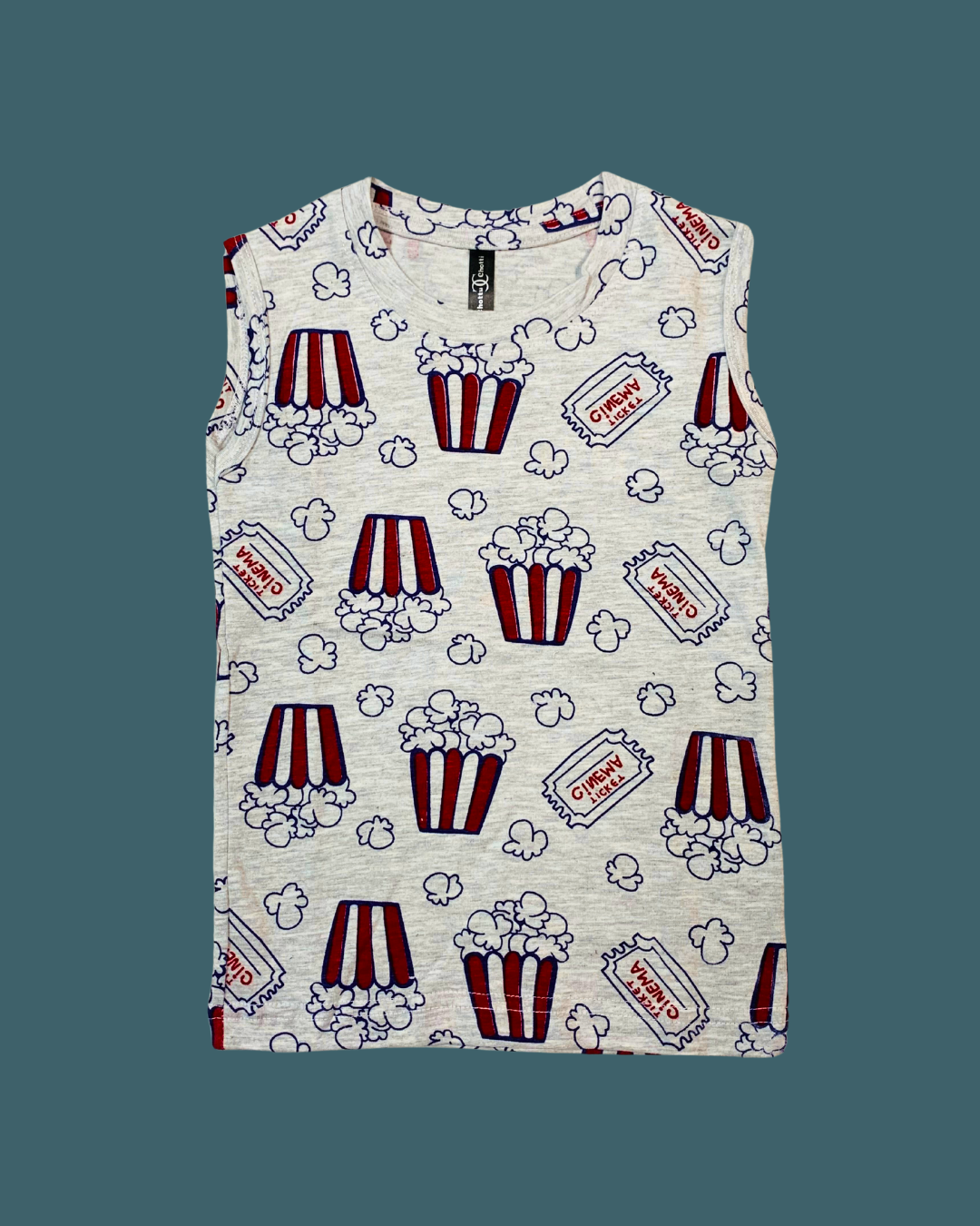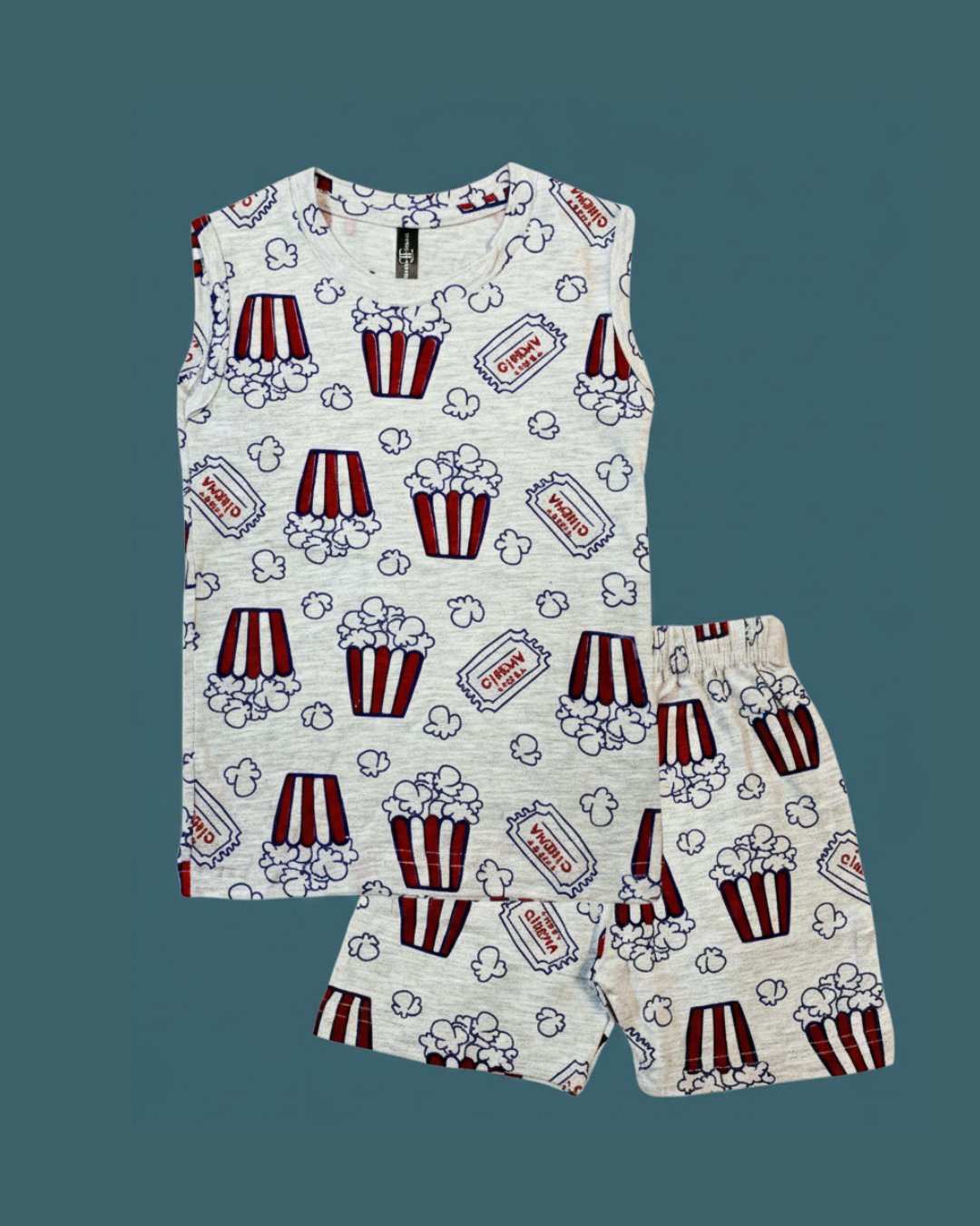 Movie Popcorn Print Kids Sleeveless T-Shirt Shorts Set (Unisex)