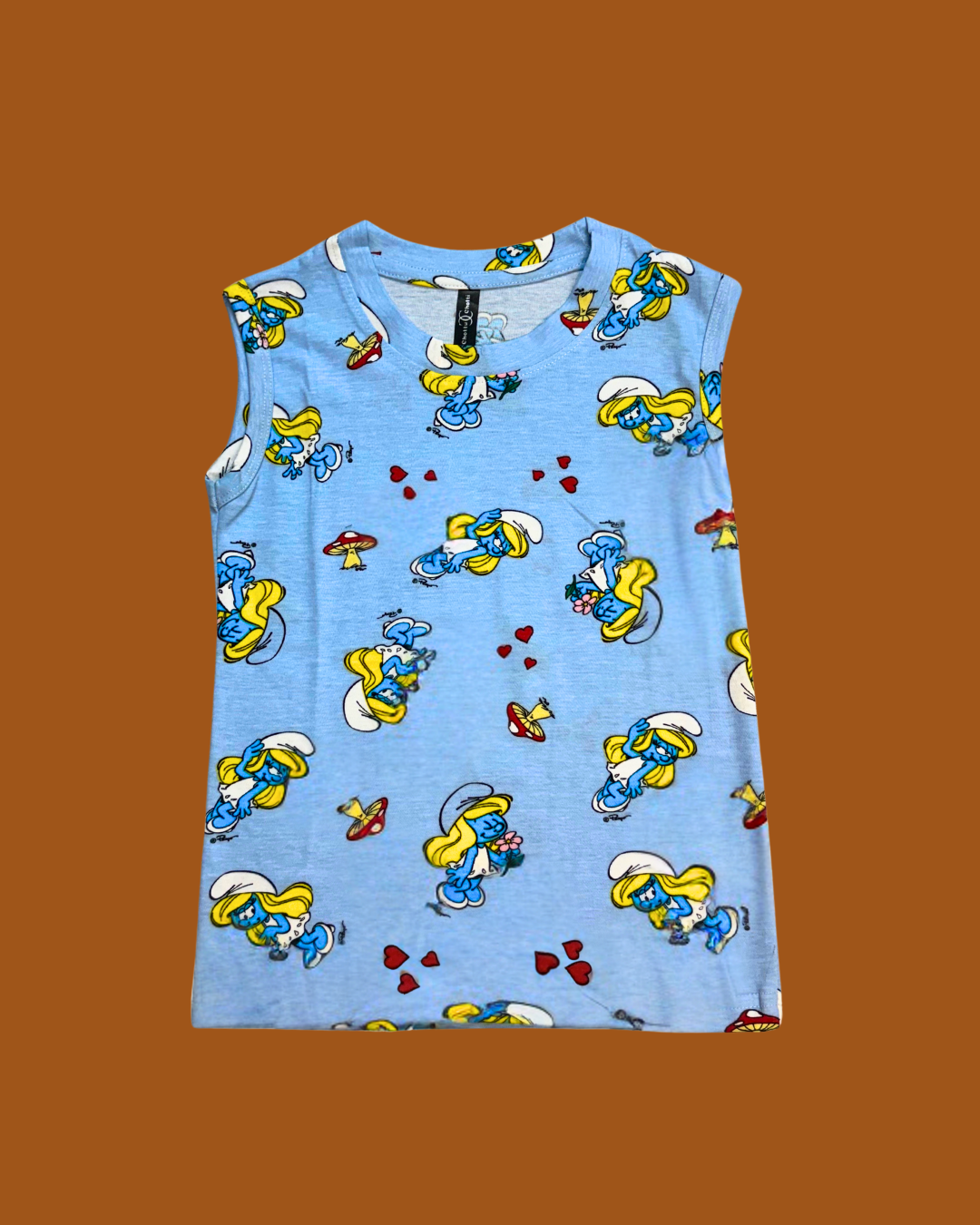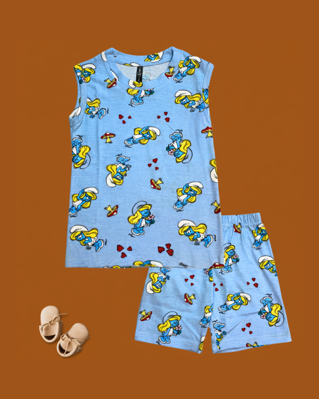 Smurf Cartoon Kids Sleeveless T-Shirt Shorts Set (Unisex)