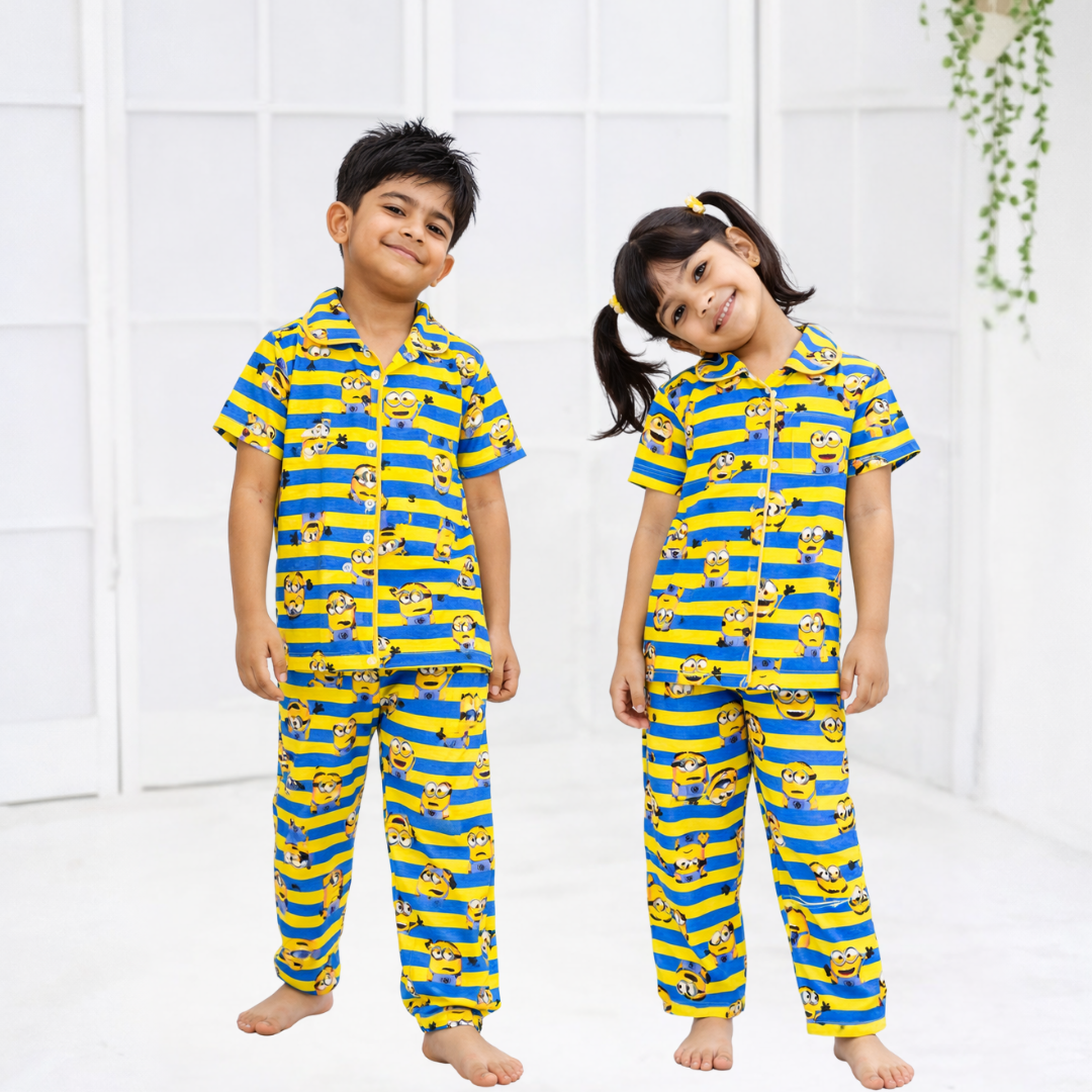 Yellow Minion Kids Night Suit - Half Sleeve Shirt and Full Pant