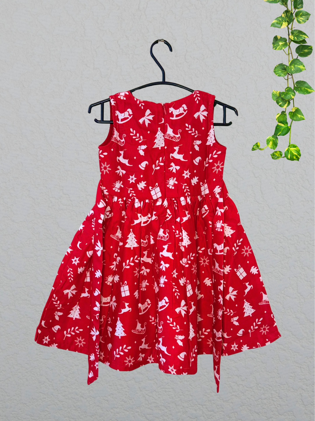 Introducing our beautifully tailored Christmas Print Cotton Frock, designed for little girls to Stay elegant with unmatched comfort. Length of the Frock - Calf Length.