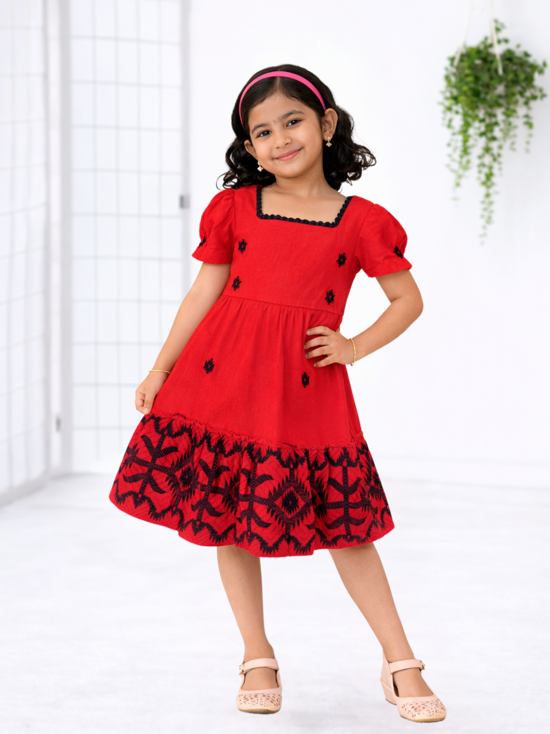 Handloom Jamdani Cotton Frock with attached Lining – Exclusive Festival Collection