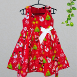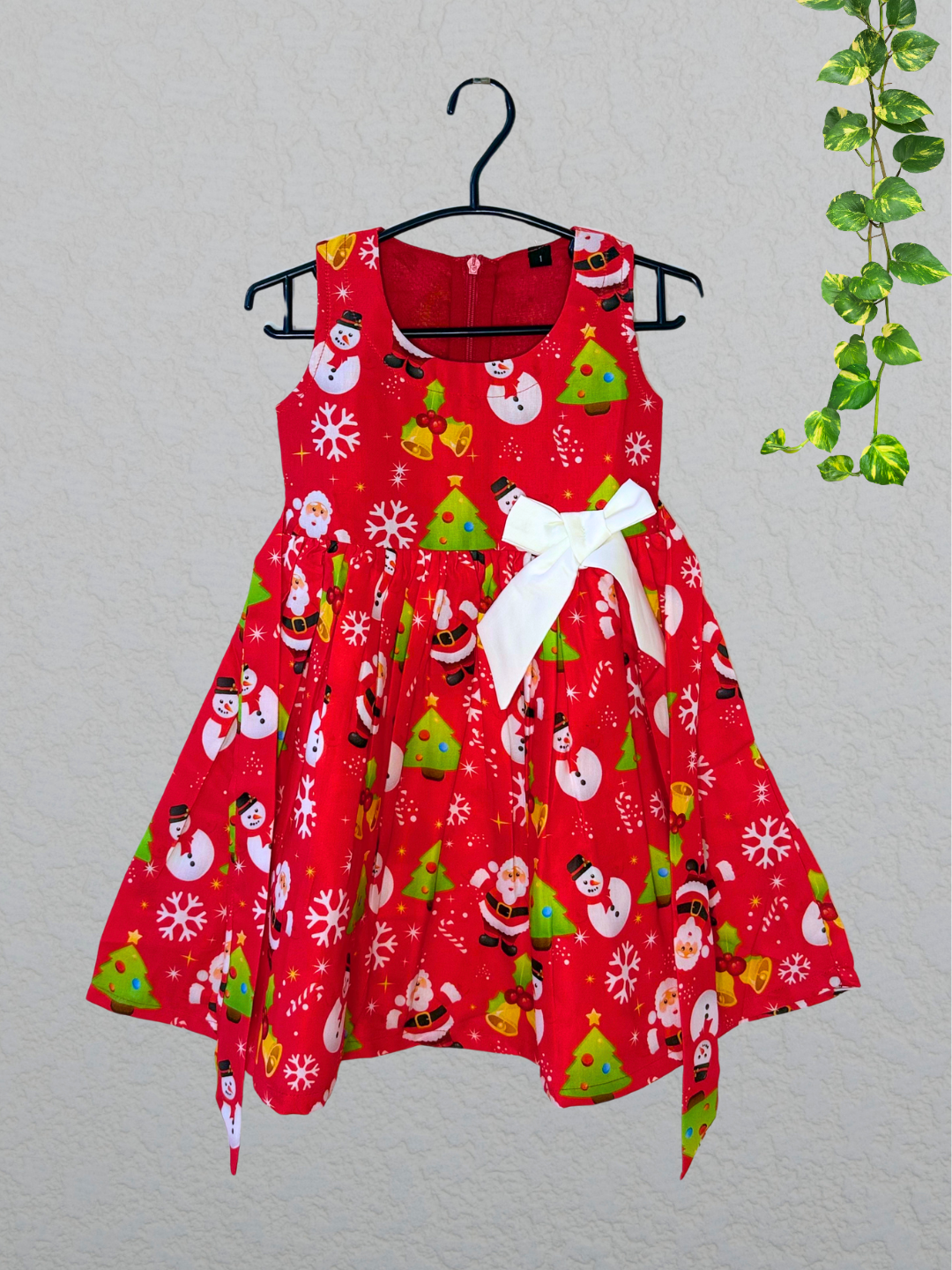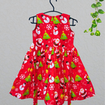 Merry Santa Cotton Frock - Sleeveless Kids Frock