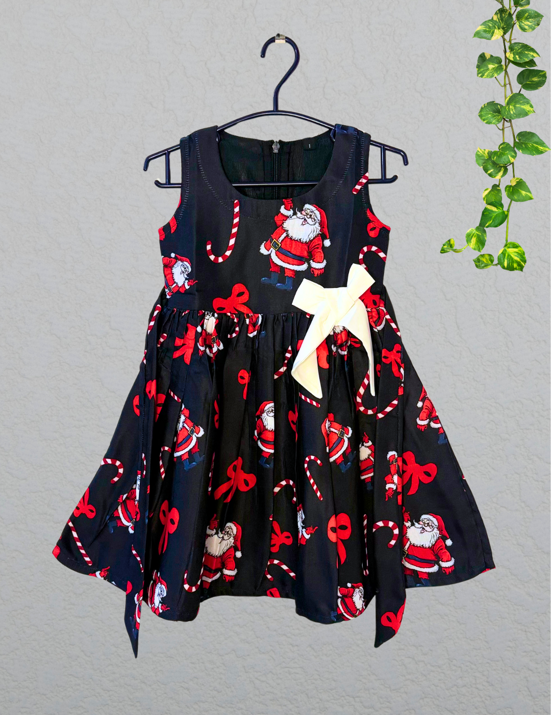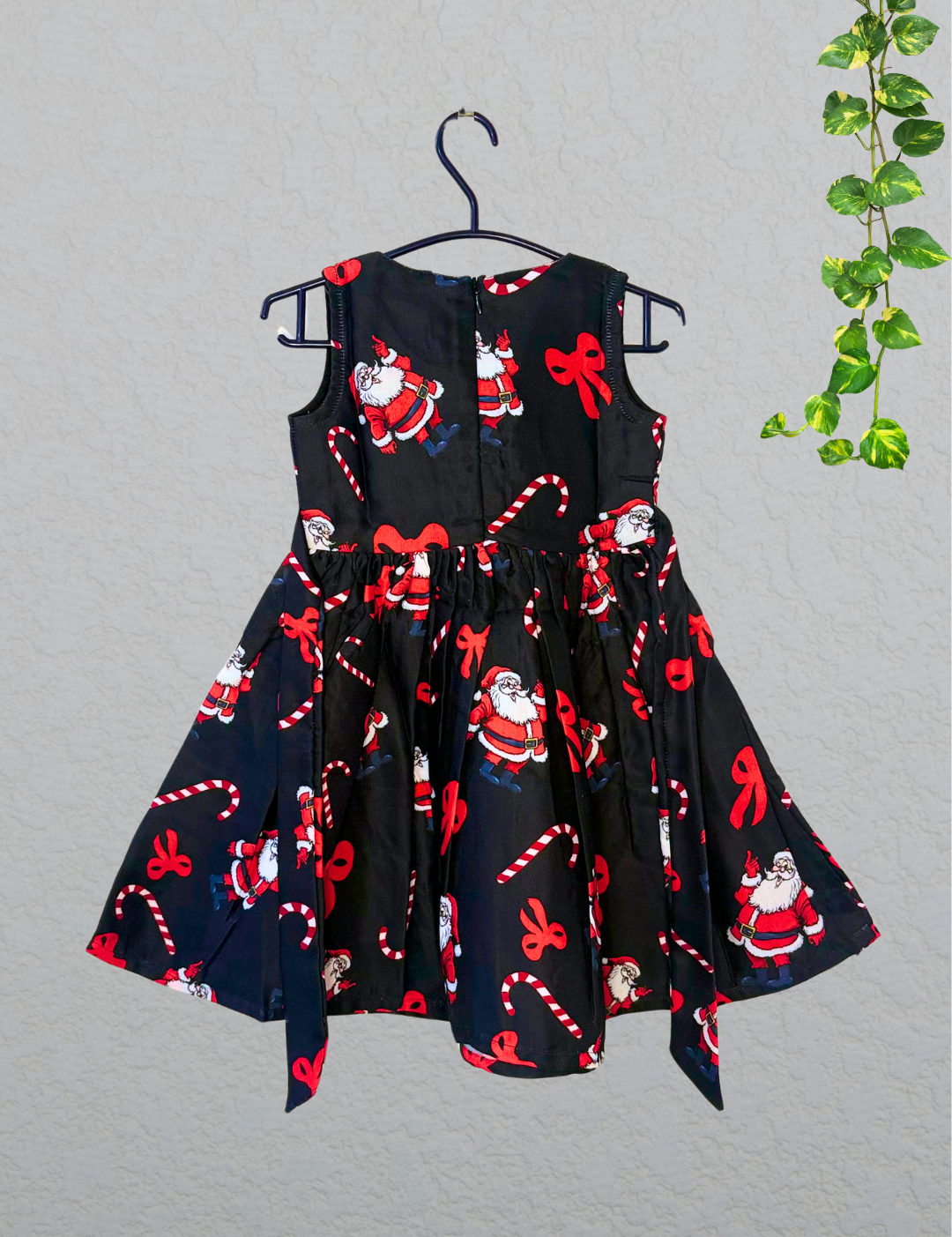 Merry Candy Santa Cotton Frock - Sleeveless Kids Frock