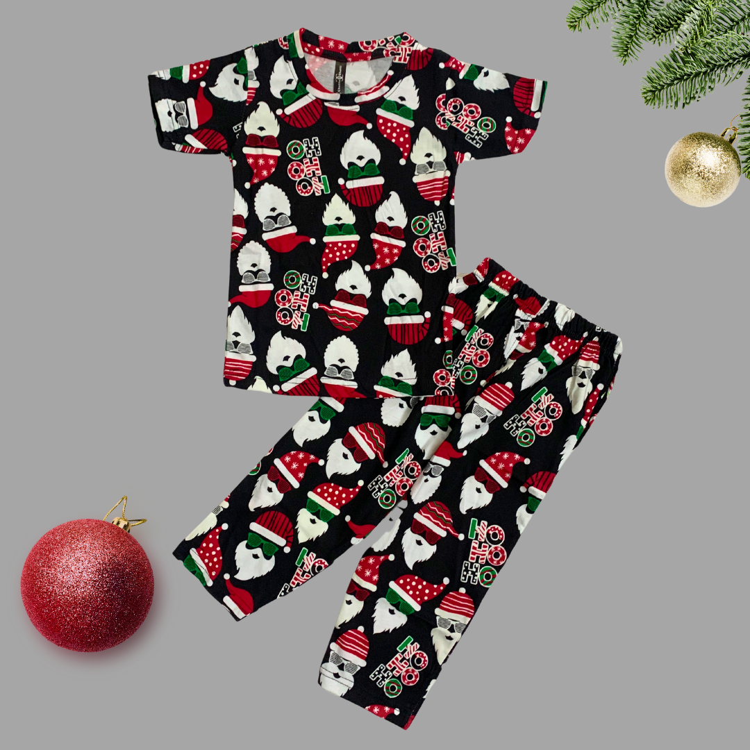 Ho ho Cool Santa Print Half Sleeve Kids Coords (Unisex)