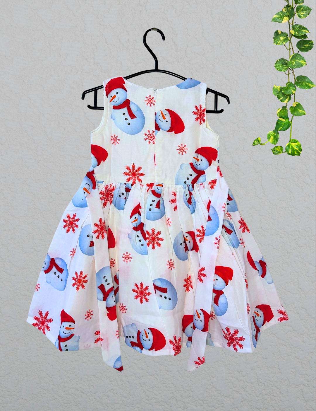 Merry Snowman Cotton Frock - Sleeveless Kids Frock