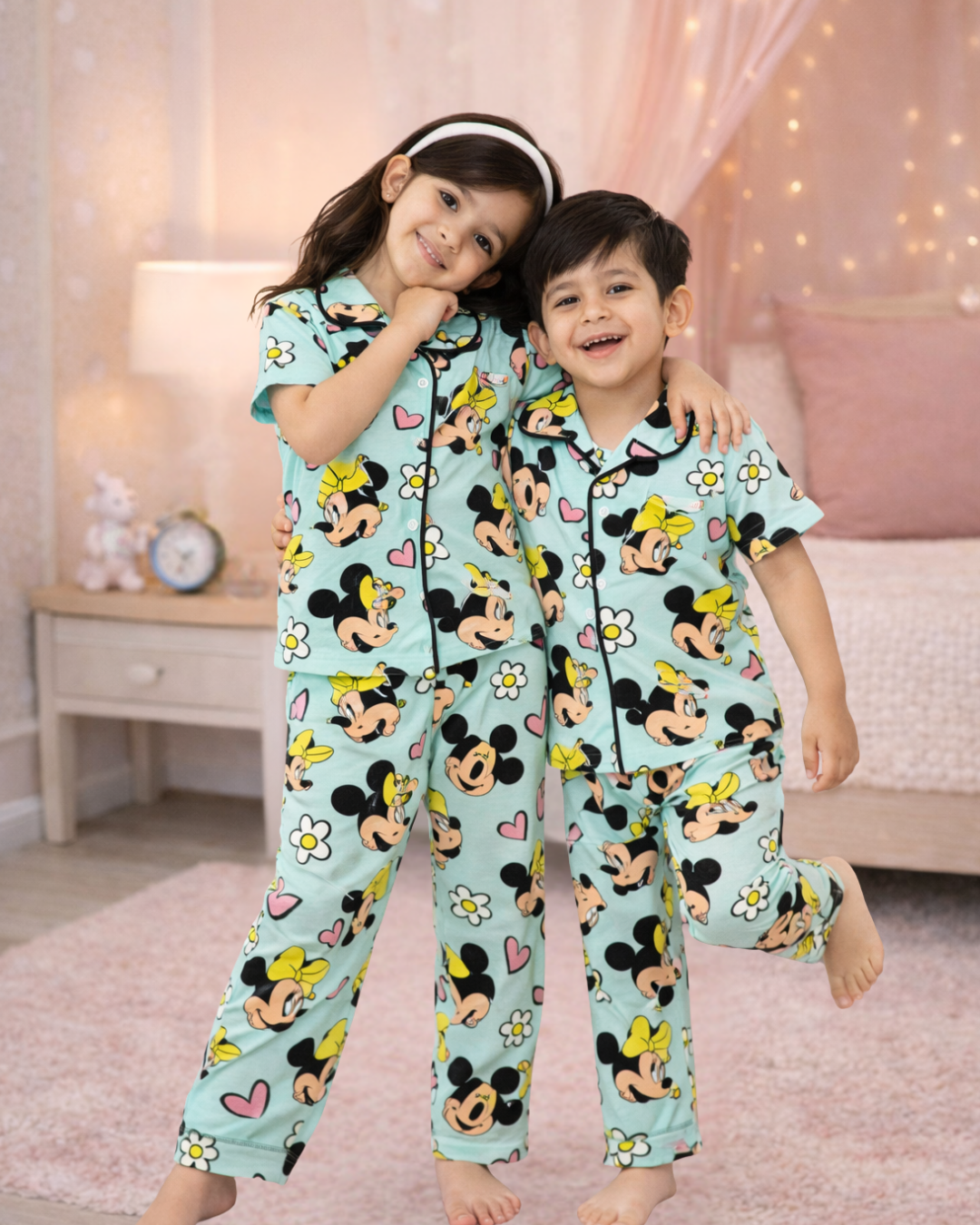 Pastel Mickey Kids Night Suit - Half Sleeve Shirt and Full Pant