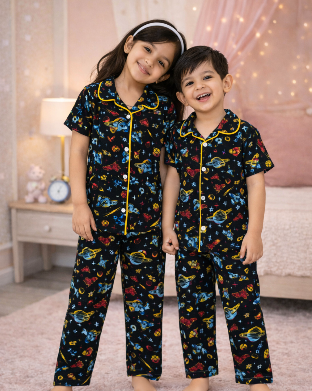 Space World Kids Night Suit - Half Sleeve Shirt and Full Pant
