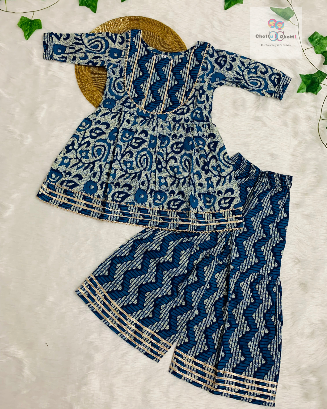 Blue Floral Girls Ethnic Kurta Sharara Set