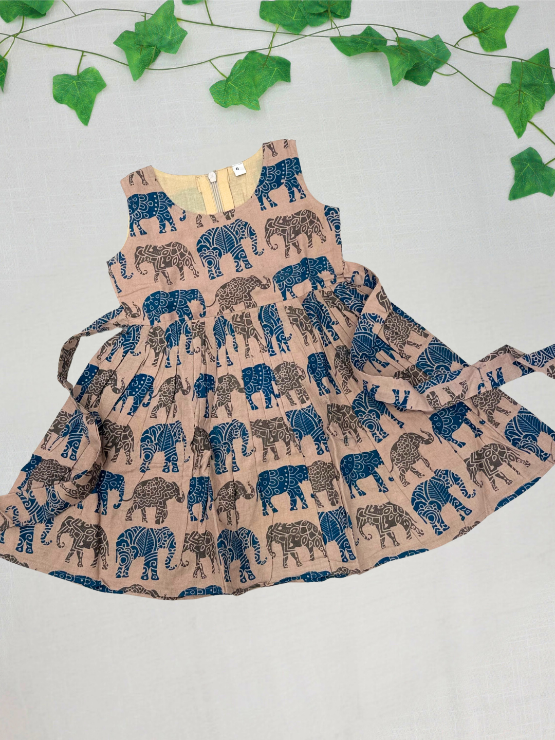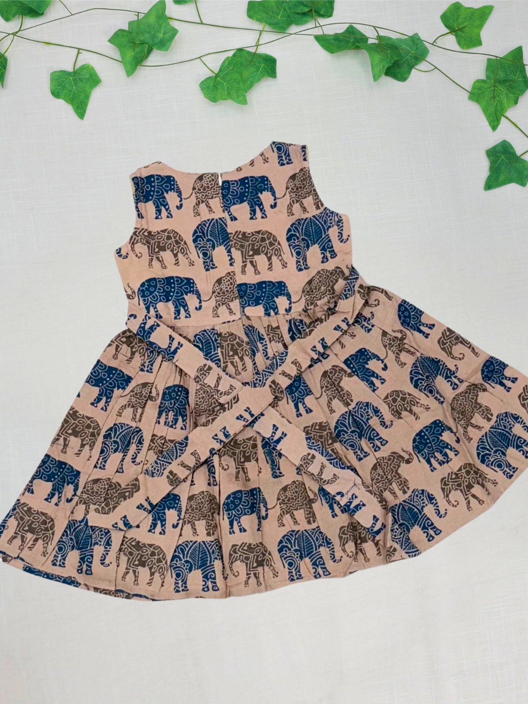 Kalamkari BG Elephant Print Cotton Frock | Sleeves Frock Calf Length
