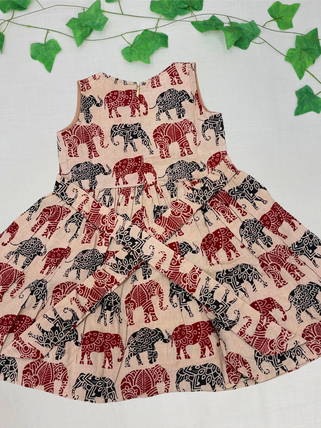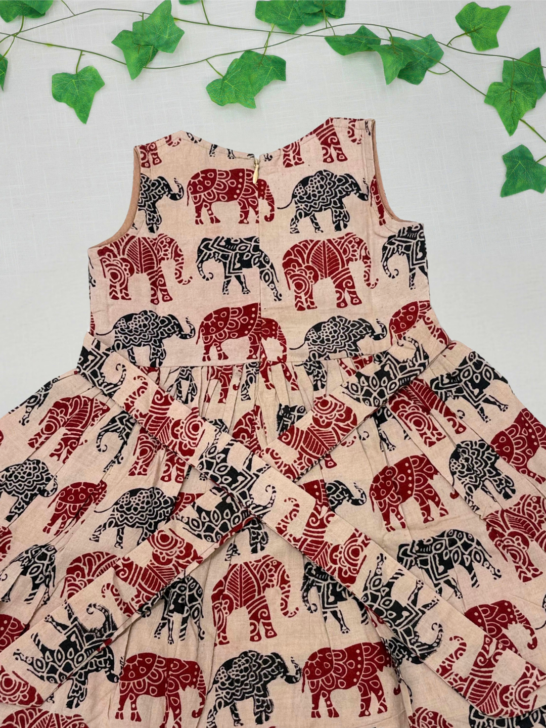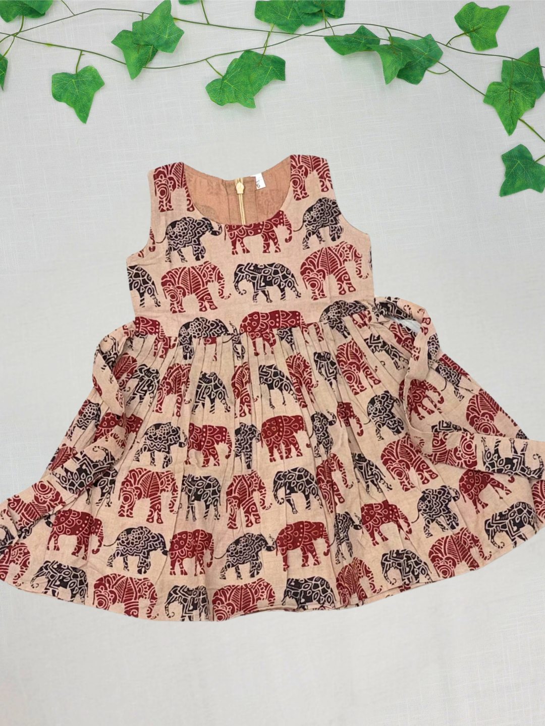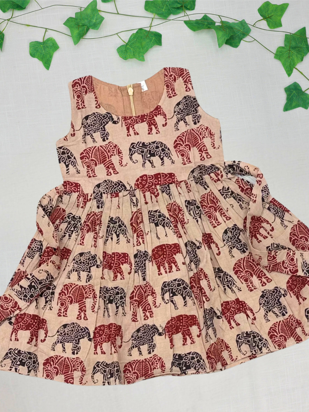 Kalamkari SG Elephant Print Cotton Frock | Sleeves Frock Calf Length