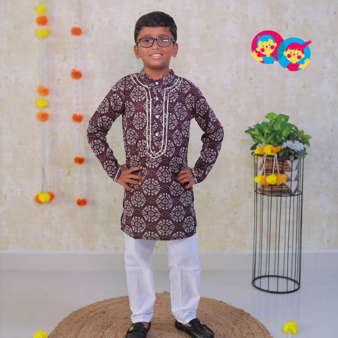 Plum Blossom Boys Ethnic Kurta Pyjama Set