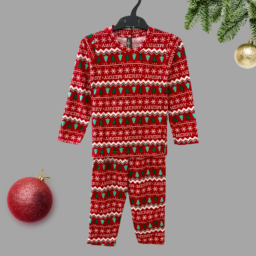 Merry Christmas Print Kids Coord Set (Unisex) - Full Sleeve T-Shirt and Full Pant