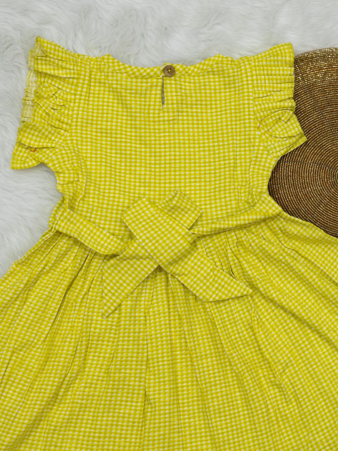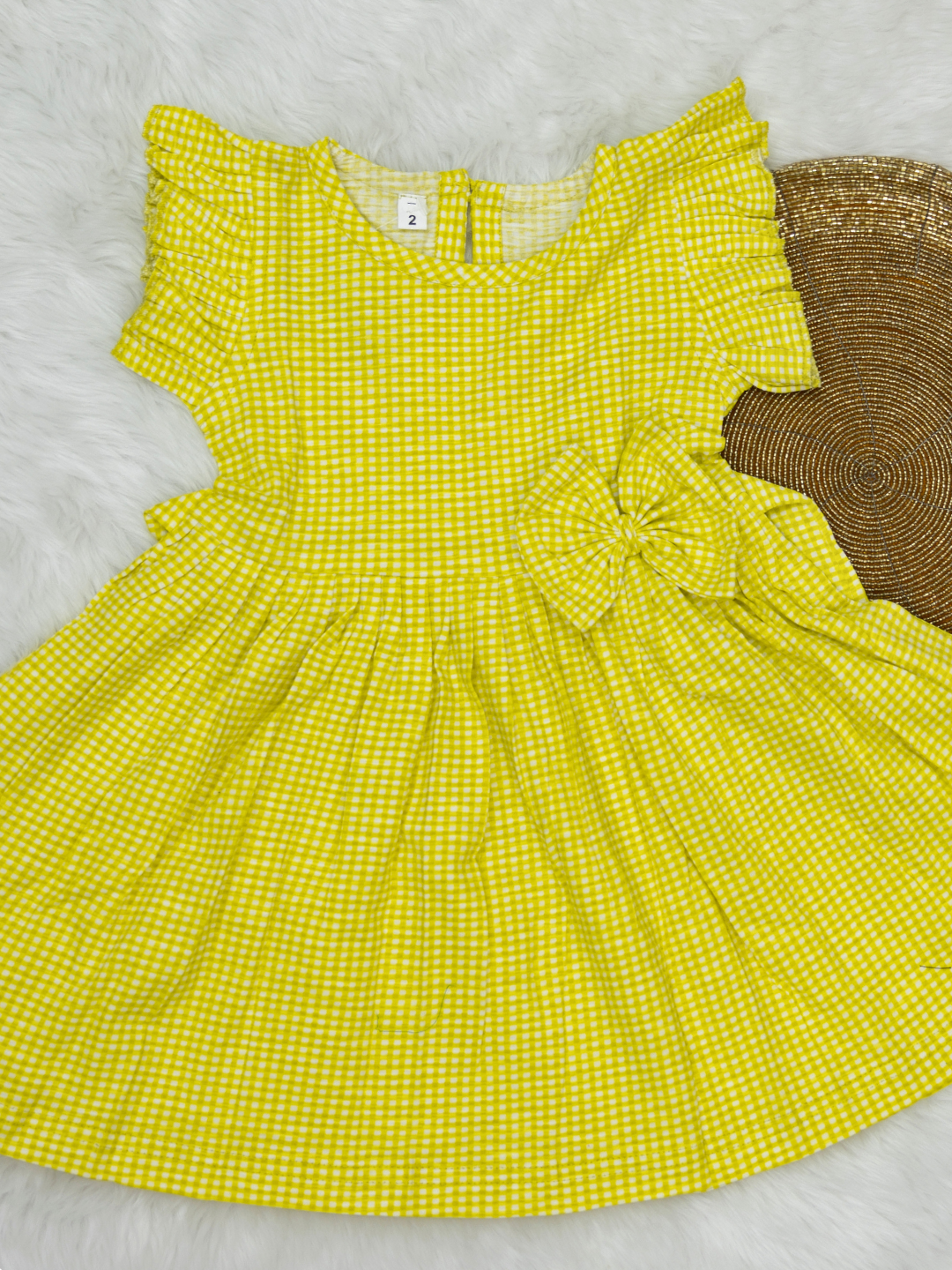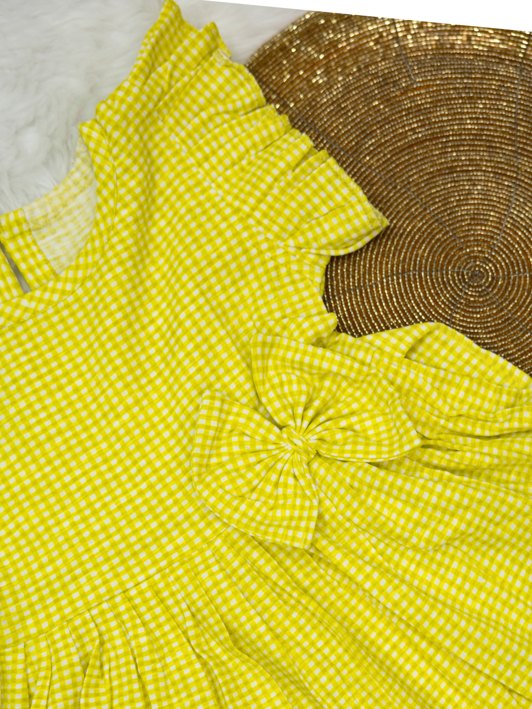 Checks - Frill Cotton Frock with Ruffle Sleeve and bow