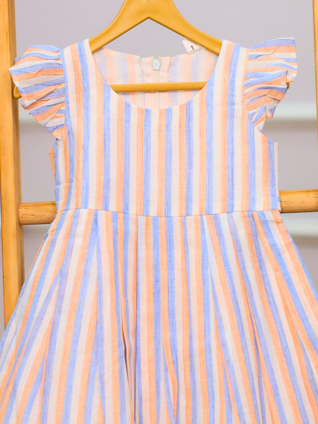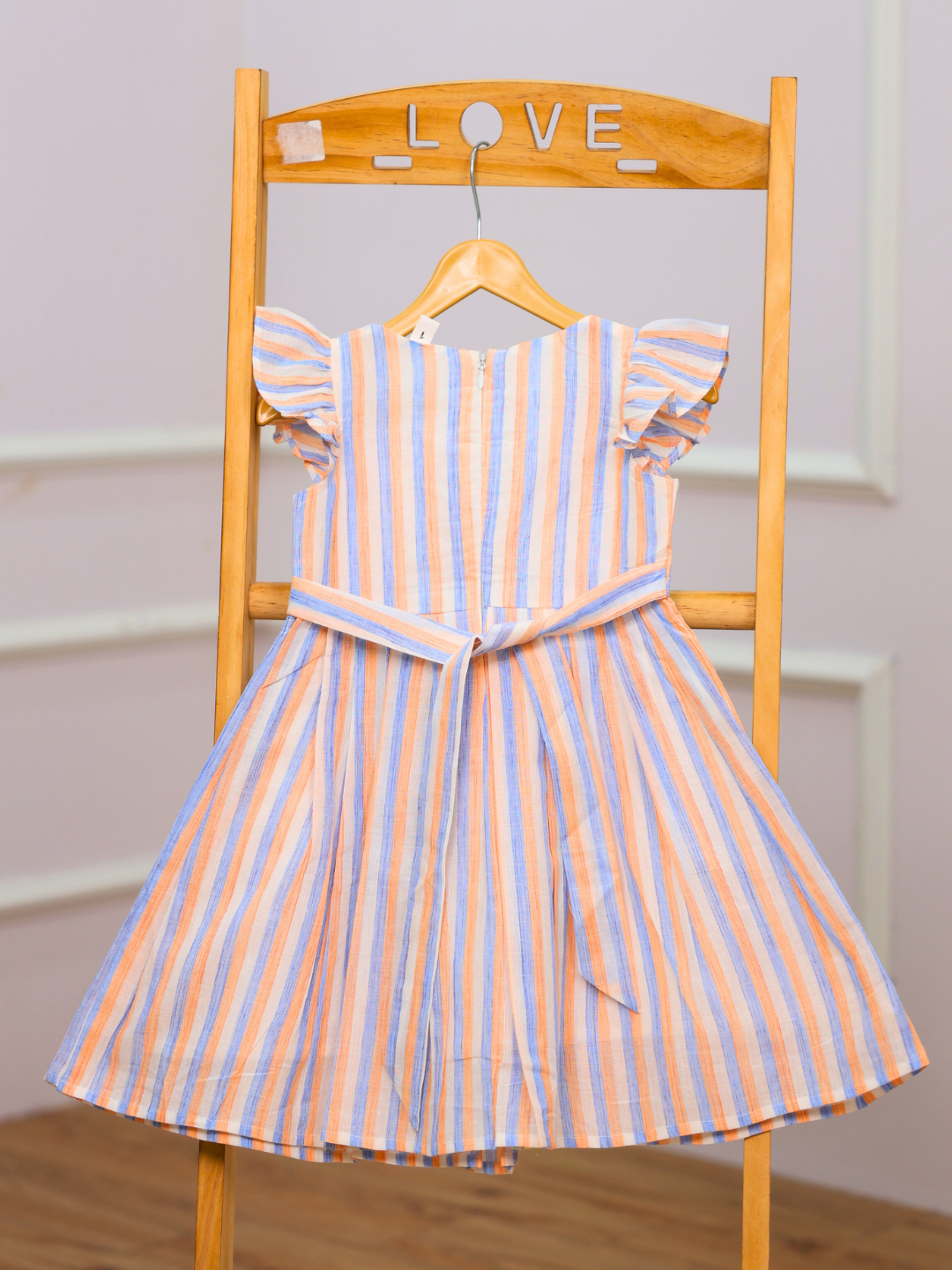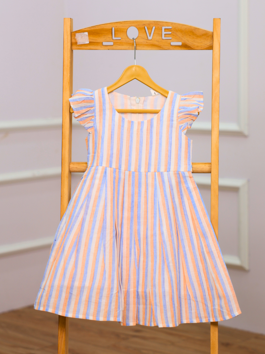 Classic Delight Stripes | Cap Sleeves Frock with Soft Lining
