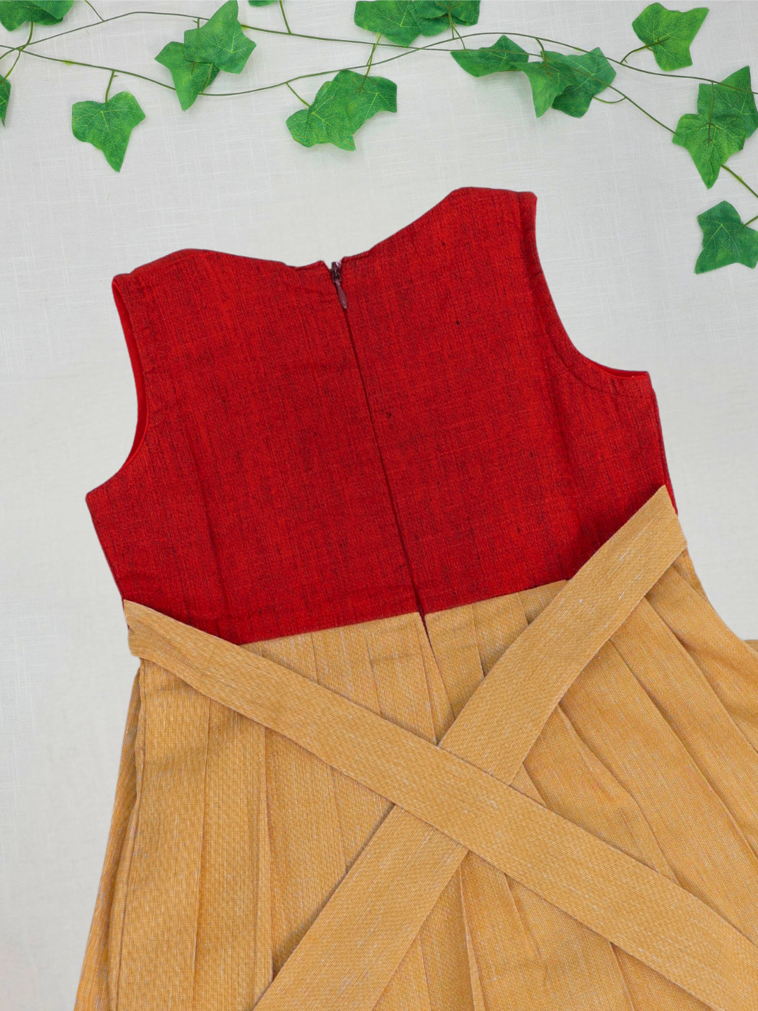 Diya HandLoom Cotton Frock | Sleeveless Frock with Pan Collar