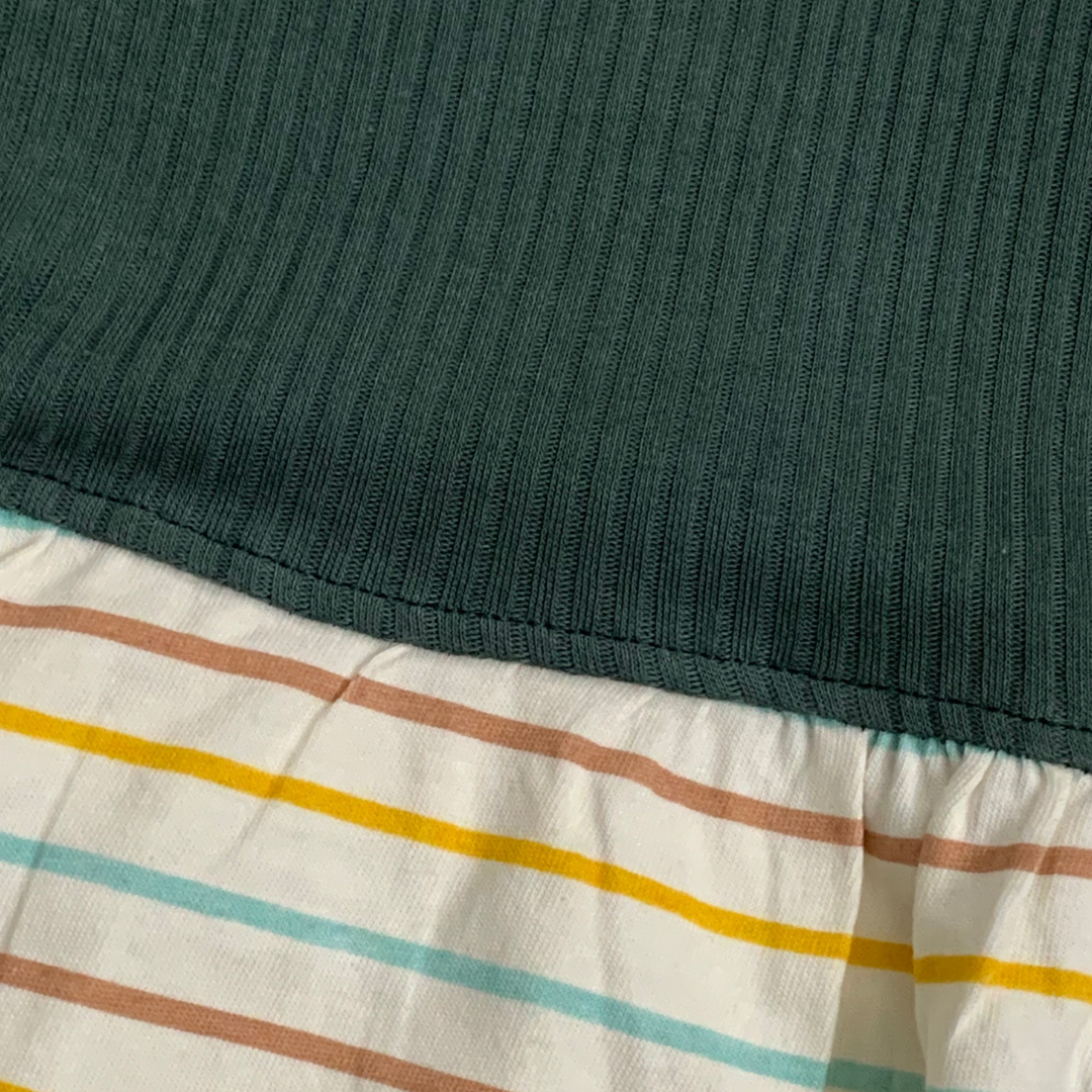 Full Sleeves Girls Frock - Green & Lines Print | Knee Length