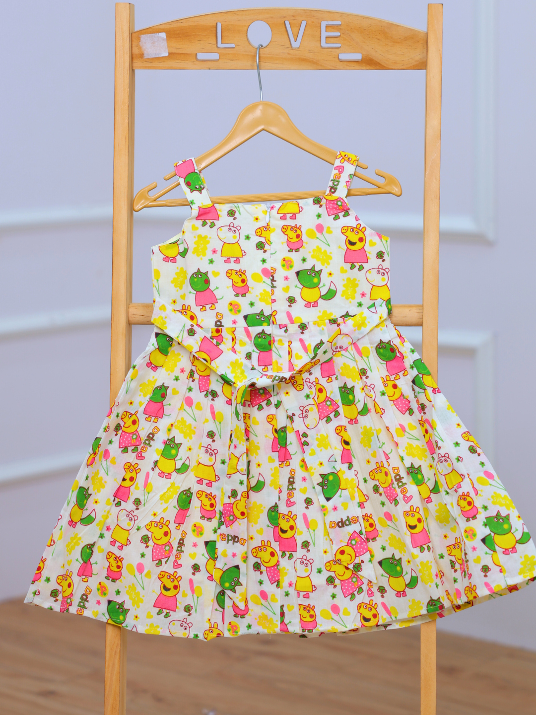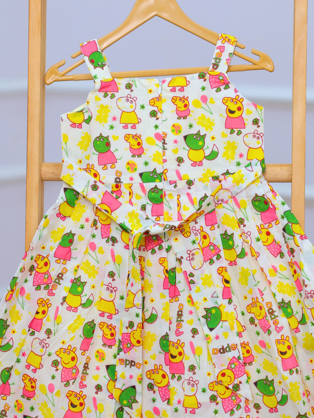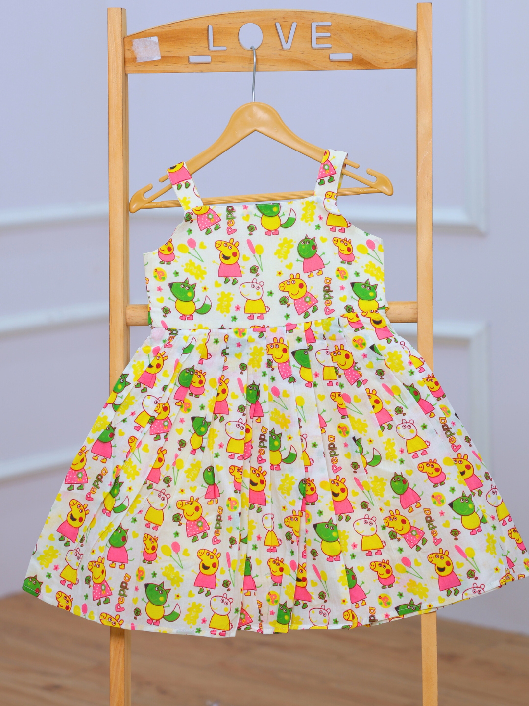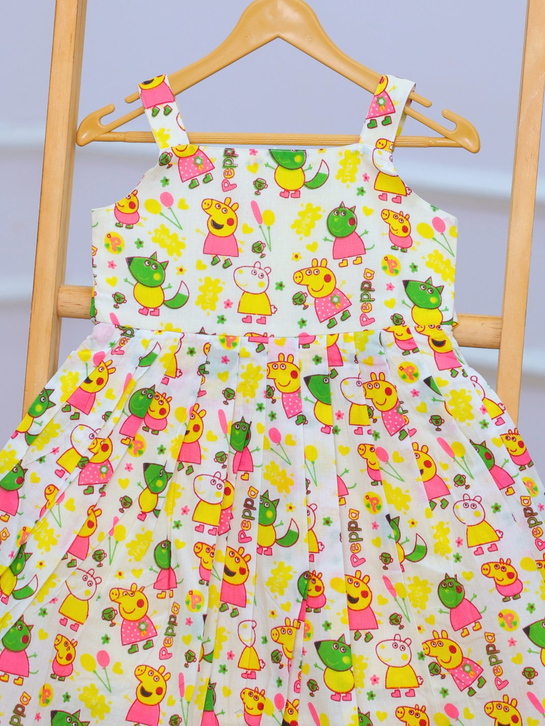 Peppa - Half White Sleeveless Cotton Frock for Girls with Lining and Back Zip