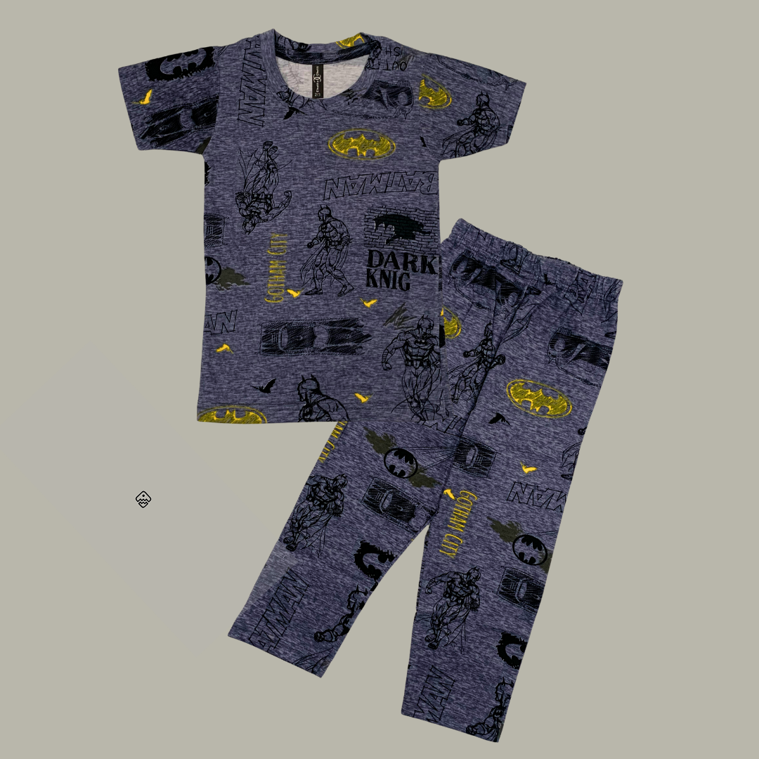 Batman Print Half Sleeve Kids Coords (Unisex) - Half Sleeve T-Shirt and Full Pant