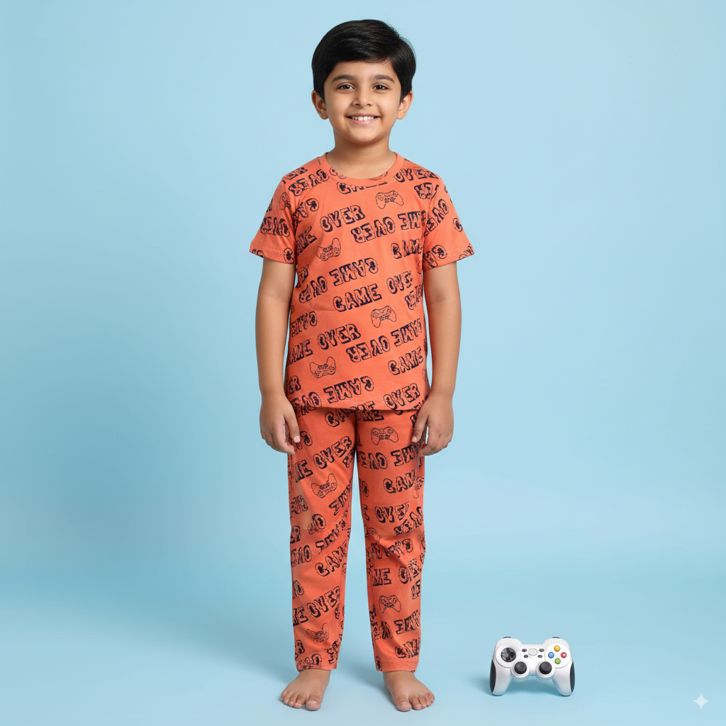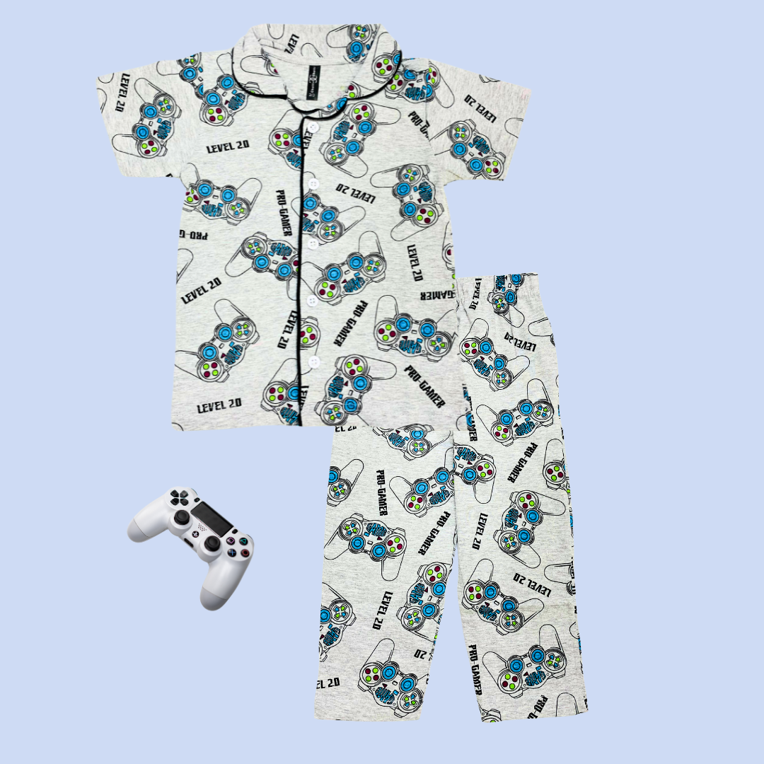 Pro Gamer Print Kids Night Suit - Half Sleeve Shirt and Full Pant