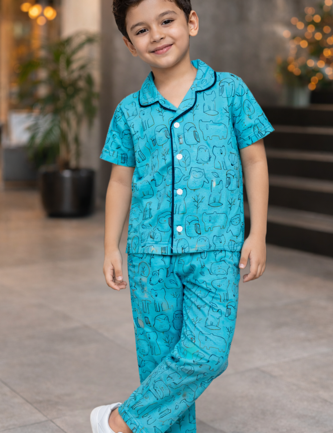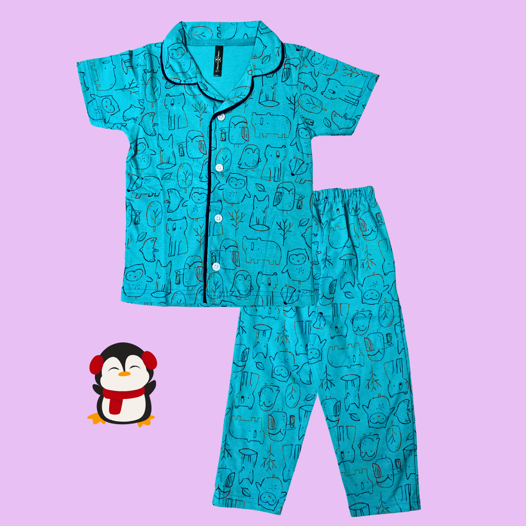 Choco Animals Print Kids Night Suit - Half Sleeve Shirt and Full Pant