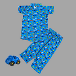 Blue Cars Print Kids collar Coord Set - Half Sleeve Shirt and Full Pant